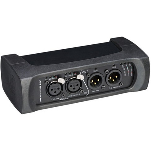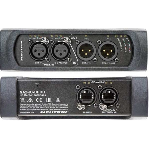 Neutrik NA2-IO-DPRO - Коммутационный блок, 2 входа и 2 выхода XLR, 2 разъема Dante, 2 микрофонных предусилителя, может быть установлен в рэковую стойку.
