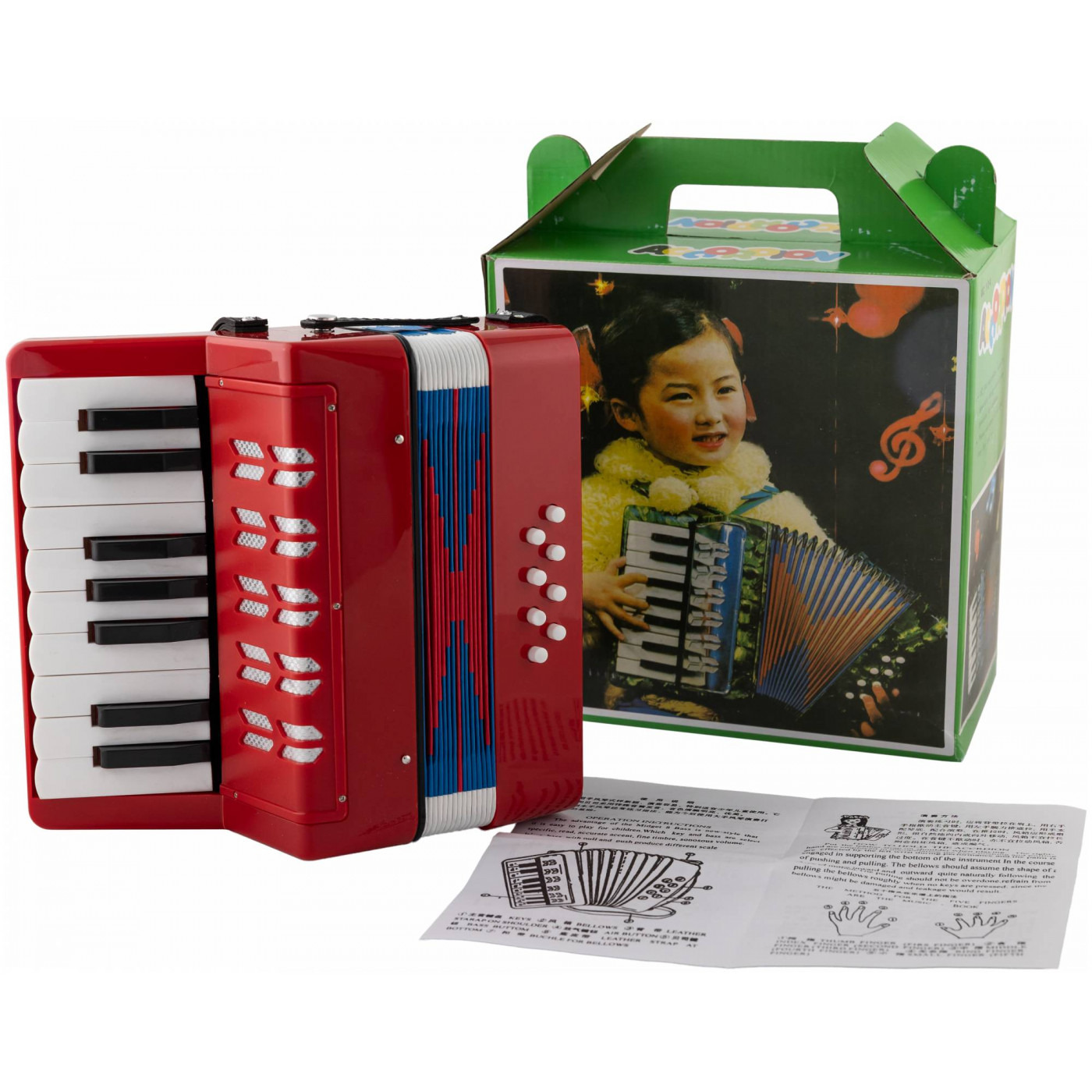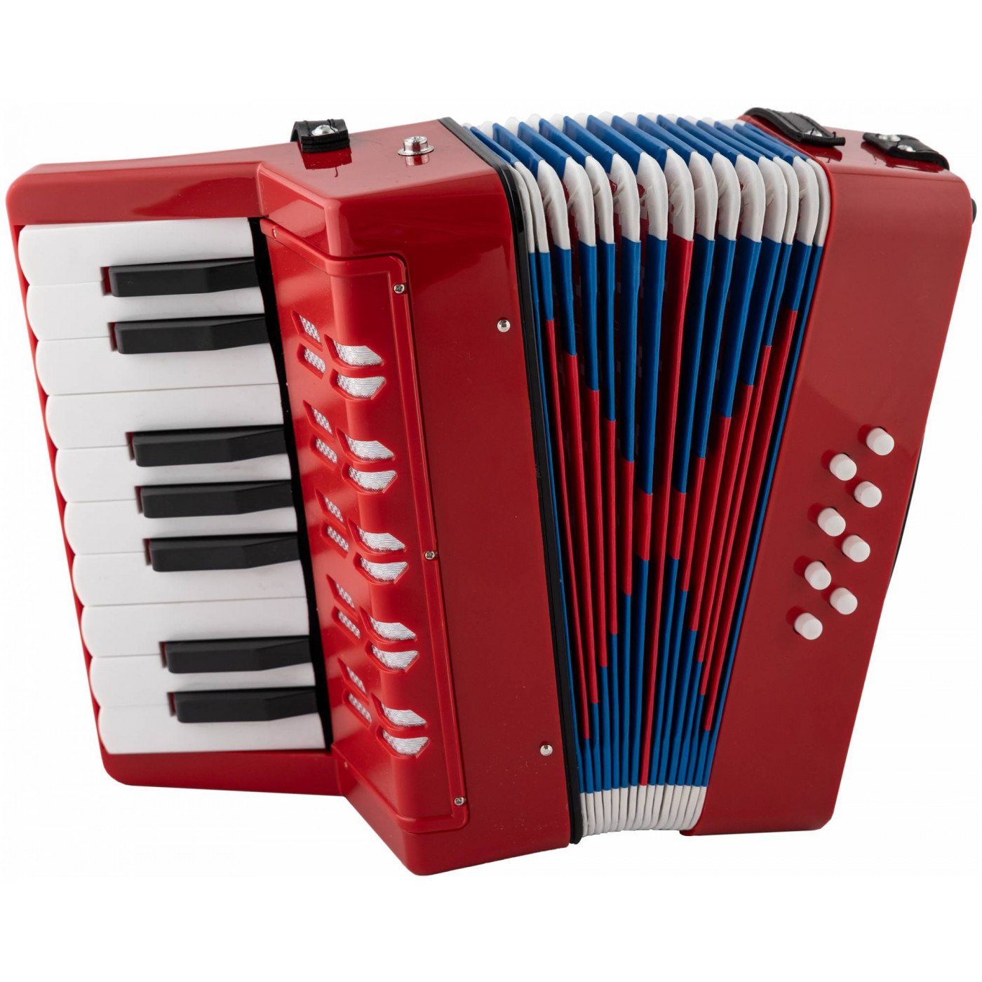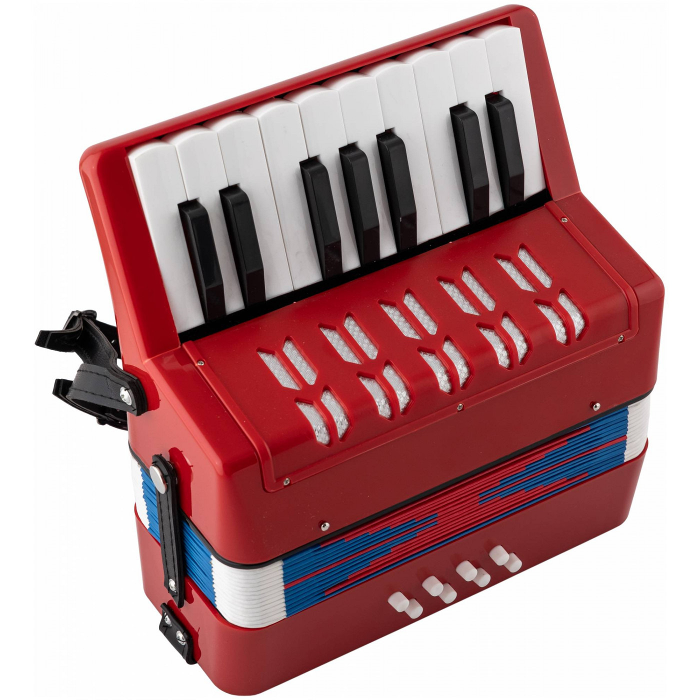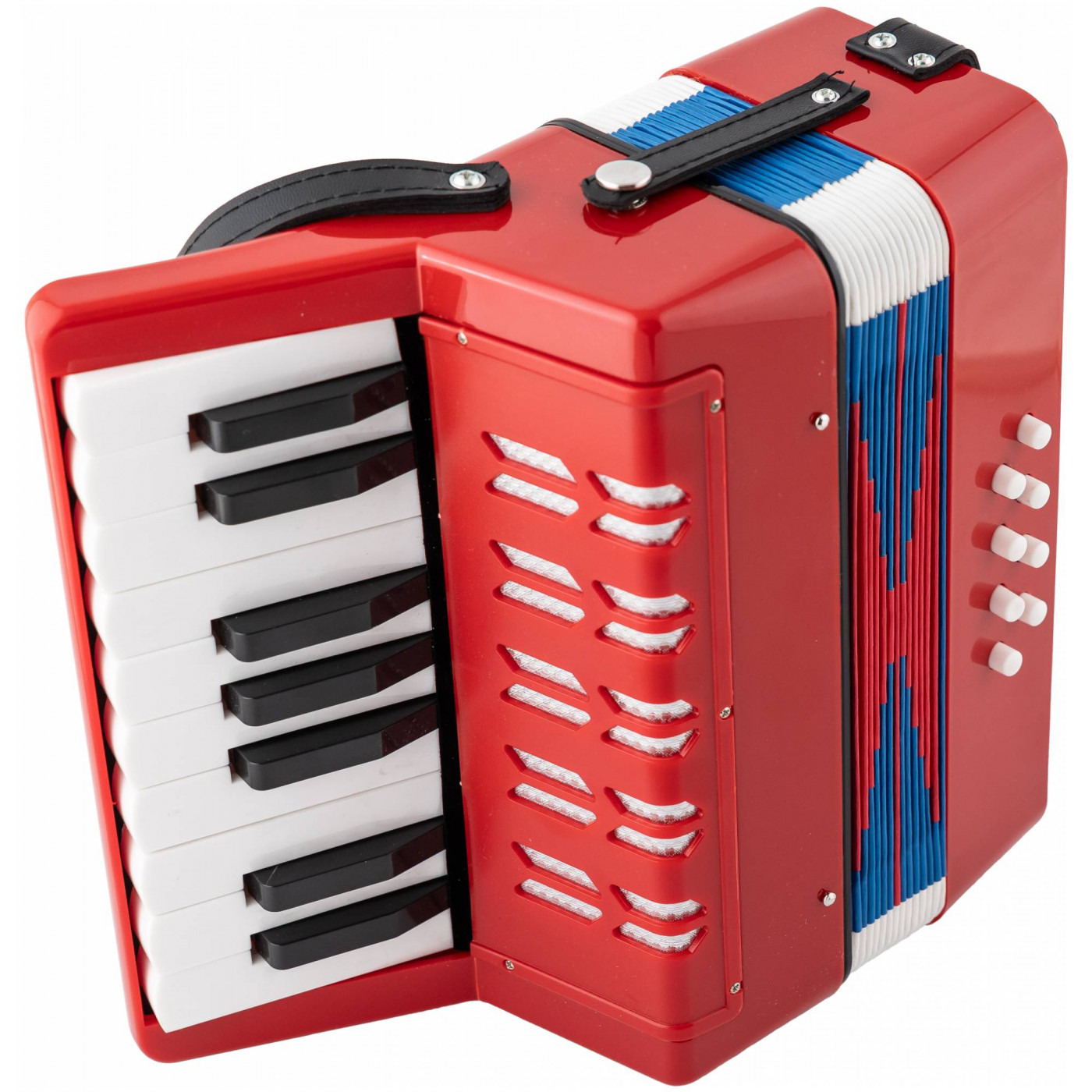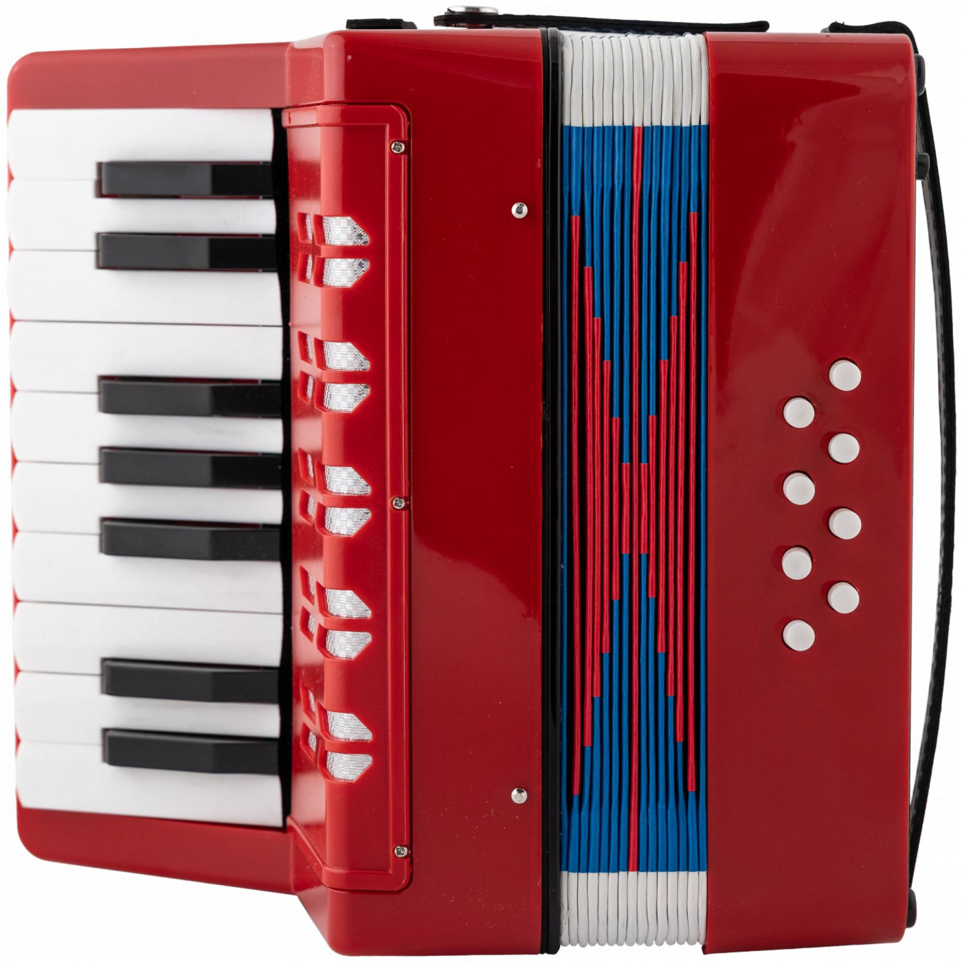 Это компактная гармошка, которая отлично подойдет для музыкального развития и развлечения самых маленьких. Ее корпус изготовлен из прочного и безопасного пластика и оснащен 17 клавишами для правой руки и 8 кнопками для левой. Инструмент имеет небольшой размер и яркий дизайн в красном цвете.