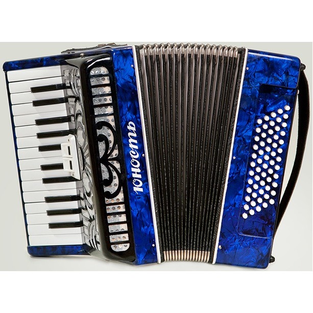 Аккордеон «Юность» - 26х60-II двухголосовый язычковый музыкальный инструмент. Предназначен для сольного и оркестрового исполнения музыкальных произведений, а также для учебных целей. Инструмент отличается хорошим тембром, экономным расходом воздуха, имеет равномерное звучание по всему диапазону, в связи с этим имеет хорошие исполнительские возможности.