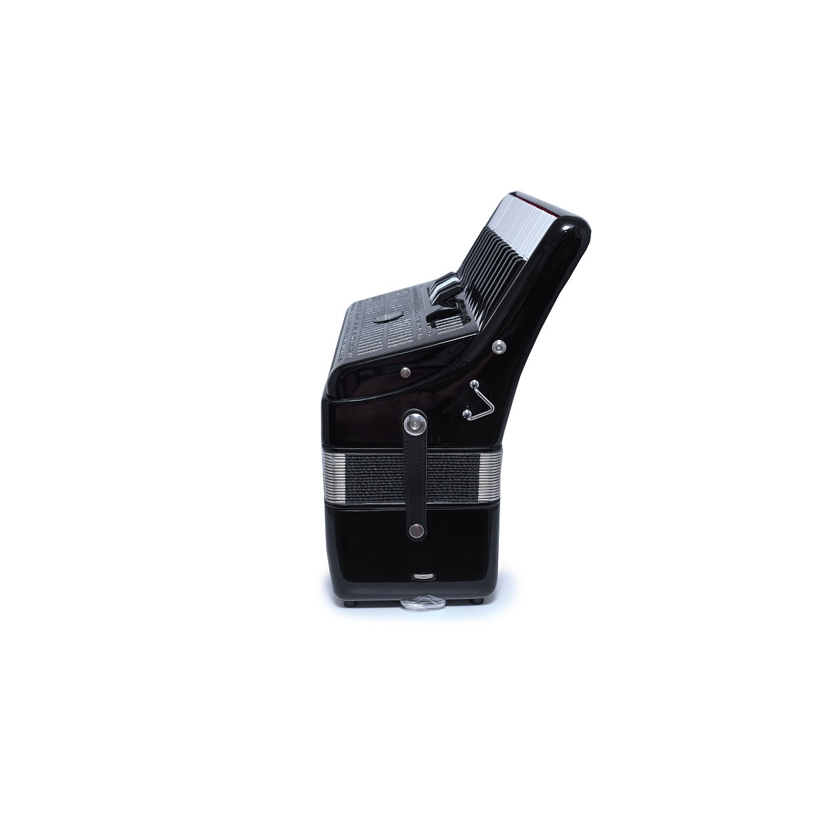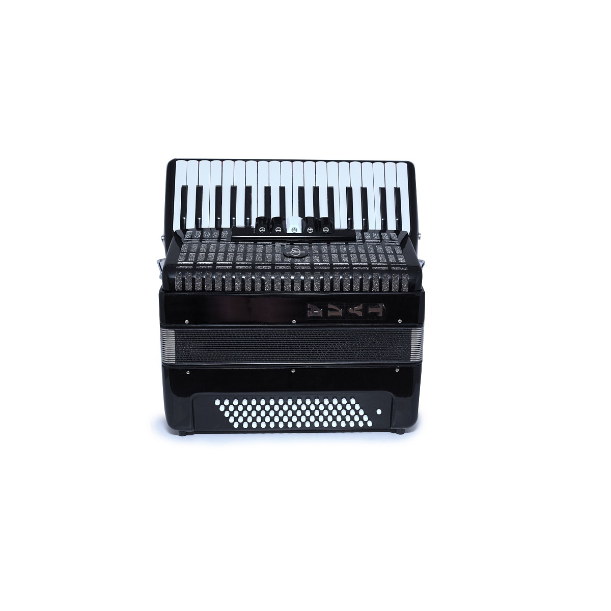 Аккордеон 3-х голосный, с готовым аккомпанементом, 5 регистров. Диапазон правой клавиатуры: от ноты "соль" малой октавы до ноты "ми" третьей октавы.