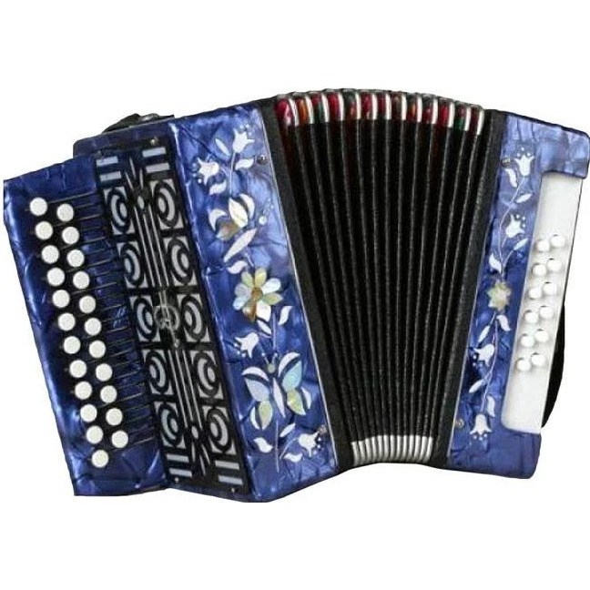 В правой части одноголосное голосное звучание. В левой части: бас — трехголосный с одновременным звучанием в двух октавах, аккомпанемент — одноголосный. Оформление корпуса — инкрустация.