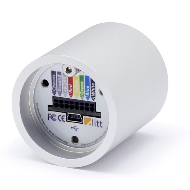Litt 50 Базовый контроллер в серебристом корпусе. На один базовый контроллер можно установить до 5-ти светодиодных сегментов системы сигнализации Litt. Все сегменты должны быть разных цветов, доступны: красный, зеленый, желтый, белый и голубой. Доступны два варианта высоты сегментов: 22 мм и 35 мм. С помощью специализированного ПО можно запрограммировать режимы работы сегментов индикации (включение, мигание разной длительности).