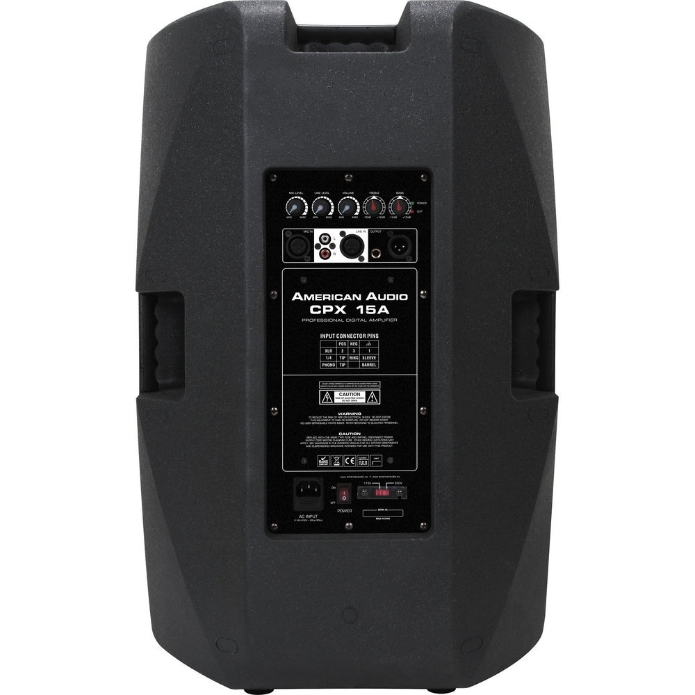 American DJ CPX 15A - 2-полосный динамик с высокоэффективным усилителем класса D. Имеет встроенный двунаправленный усилитель мощностью 500 Вт, синхронизированный по времени электронный кроссовер, 5 монтажных точек M8. Есть возможность монтажа на штативе. Защита от отсечения и перегрева предусмотрена.