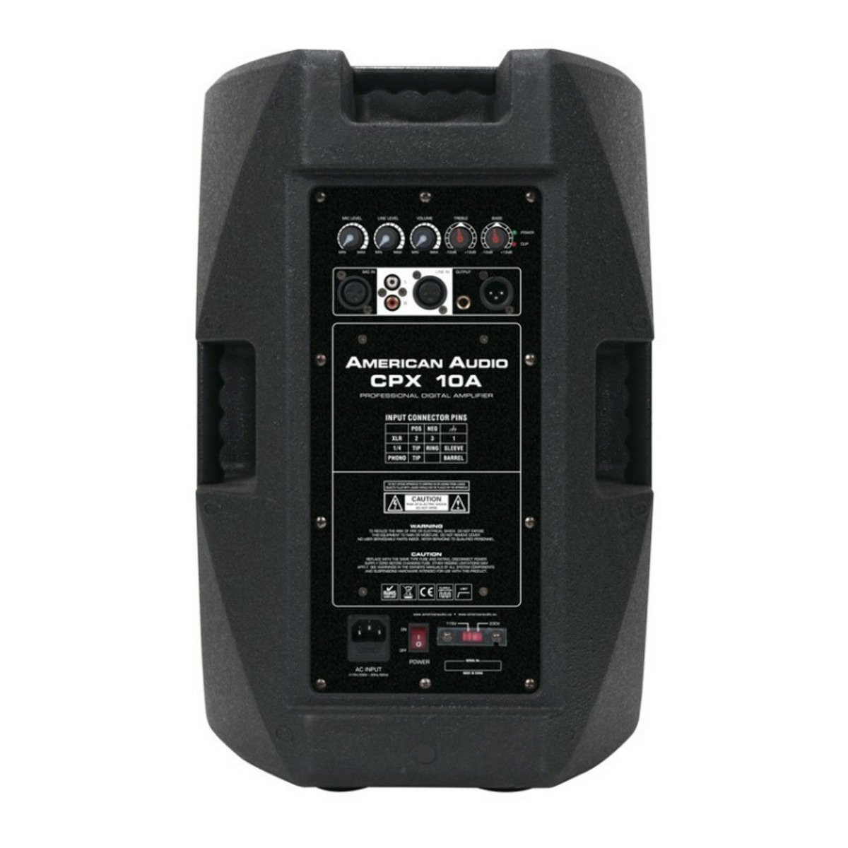 American DJ CPX 10A - 2-полосный динамик с высокоэффективным усилителем класса D. Имеет встроенный двунаправленный усилитель мощностью 250 Вт, синхронизированный по времени электронный кроссовер, 5 монтажных точек M8. Есть возможность монтажа на штативе. Защита от отсечения и перегрева предусмотрена.