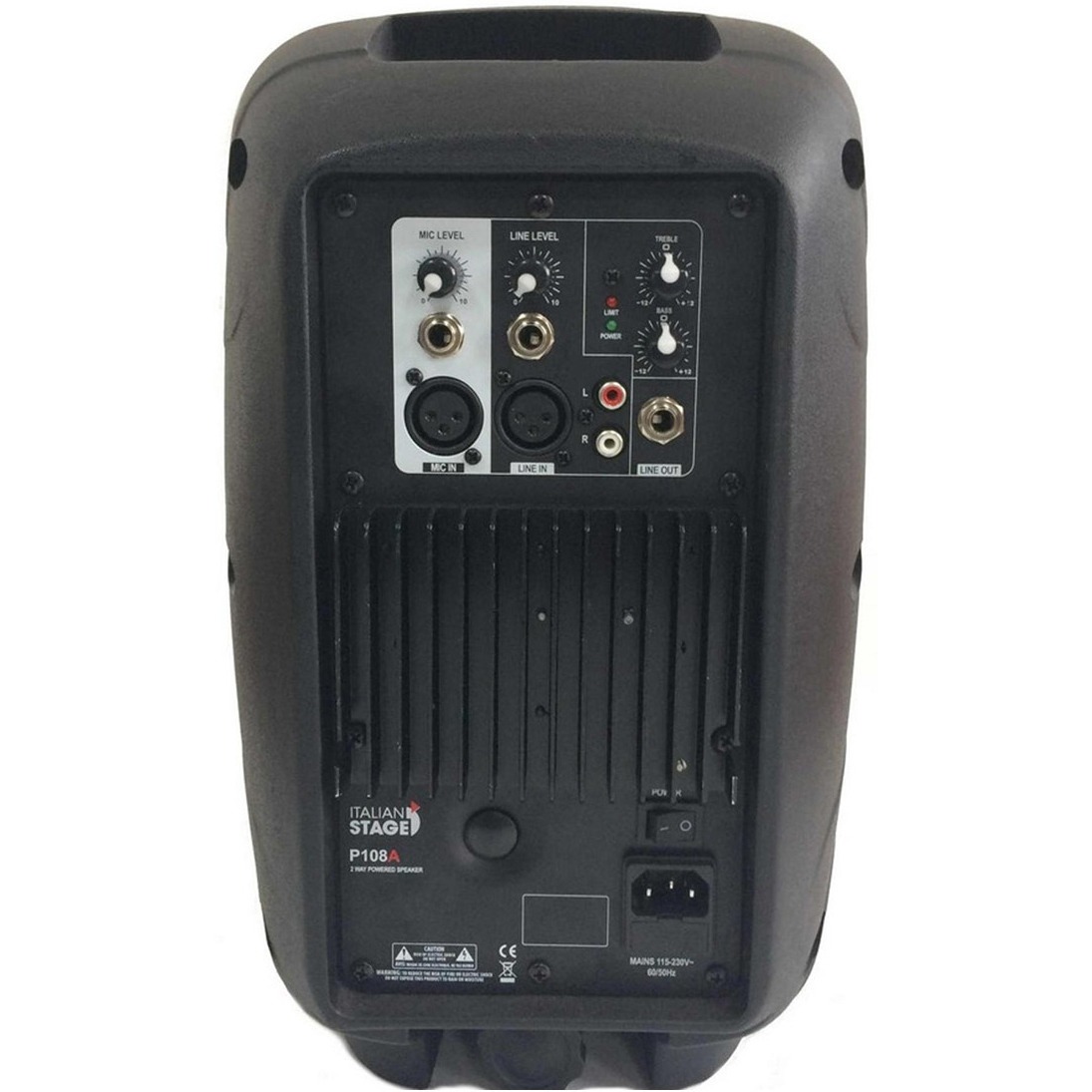 Italian Stage P108A MKII – 2-полосная активная акустическая система с 8-дюймовым вуфером, 1-дюймовым твитером, встроенным усилителем класса AB, мощностью до 300 Вт и частотным диапазоном 60 Гц – 20 кГц. Активная акустическая система P108A MKII оснащена встроенным 2-полосным усилителем класса АВ, выдающим 120 Вт на вуфер и 30 Вт на твитер. Сочетание 8-дюймового вуфера и 1-дюймового твитера поможет добиться качественного воспроизведения звука, а наличие 2-полосного эквалайзера на задней панели поможет выполнить тональную настройку сигнала.