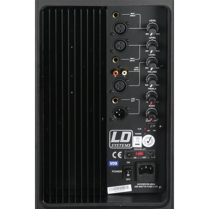 Этот мощный динамик был разработан для применений, как в качестве решения для полного диапазона частот, а также в сочетании с сабвуфером. Секция двухканального усиления обеспечивает выходную мощность 1200 Вт (пиковая) и уровень звукового давления 124 дБ (макс.). Этот громкоговоритель впечатляет богатым басами, а также напористыми средними частотами. На задней панели размещены элементы управления: 2 микрофонных входа (XLR/джек), линейный разъем (RCA/XLR), линейный выход (XLR/джек), 2-полосный эквалайзер, переключатель усиления басов и заземления.