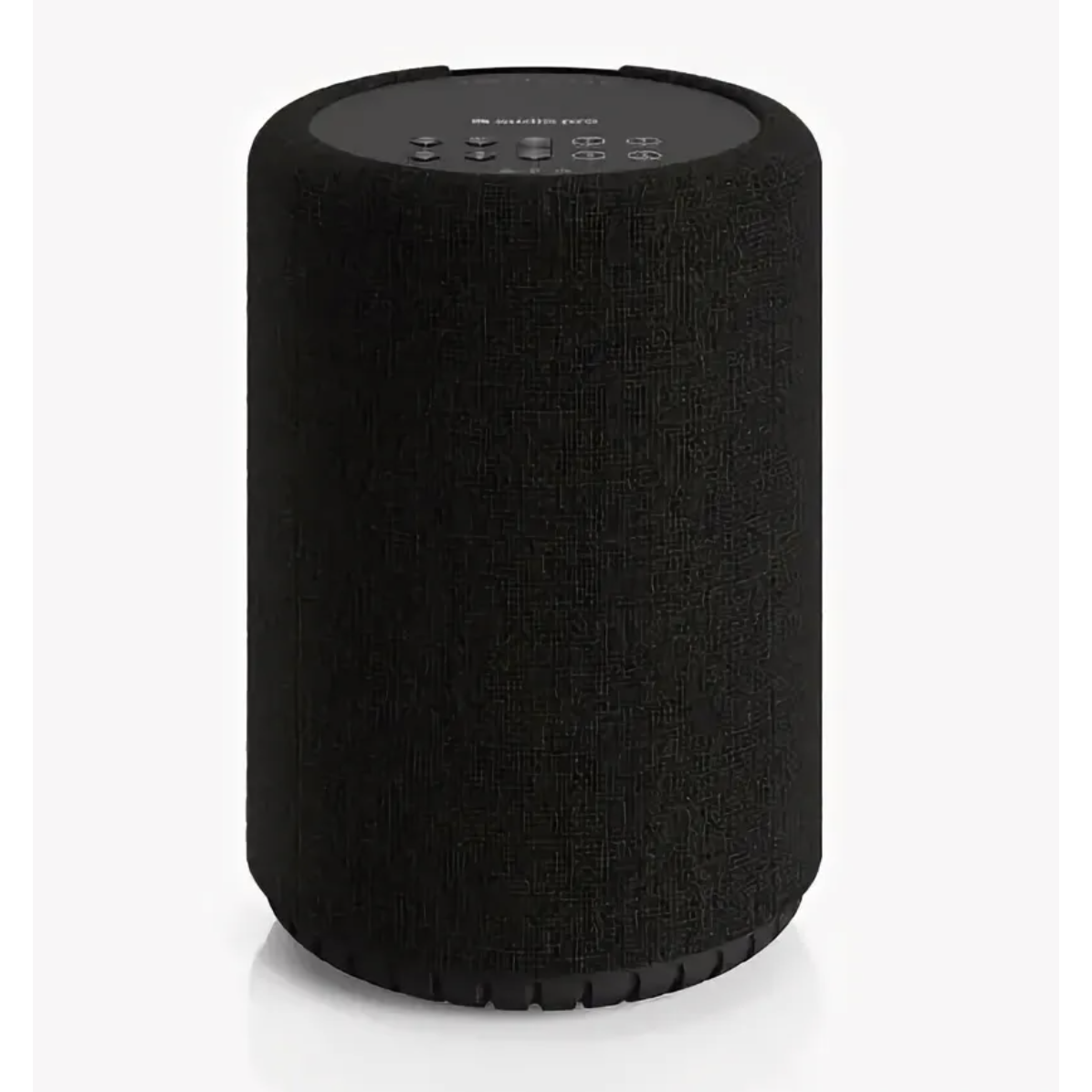 Дизайн. Компактный корпус цилиндрической формы с тканевым фасадом чёрного цвета, который гармонично вписывается в современный интерьер.