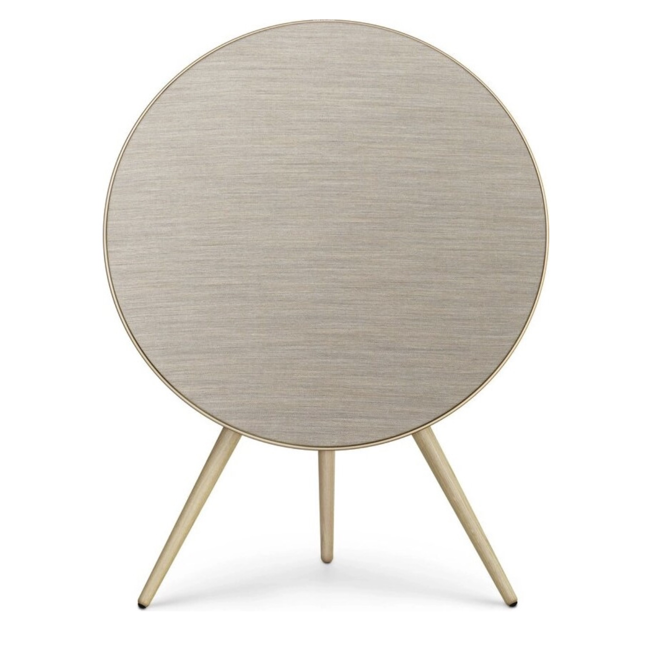 - Дизайн: корпус из анодированного алюминия с тканевыми панелями Kvadrat. Ножки из светлого дуба и золотистая тканевая крышка дополняют вариант Gold Tone. media-av.ru +1