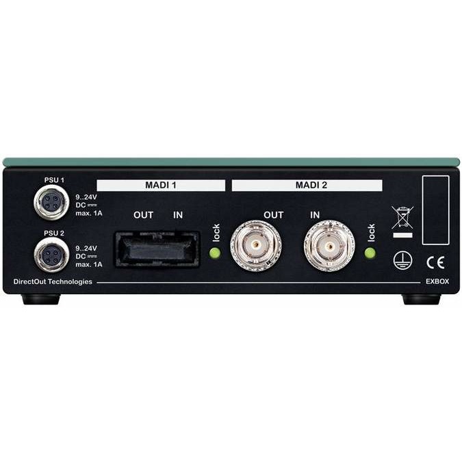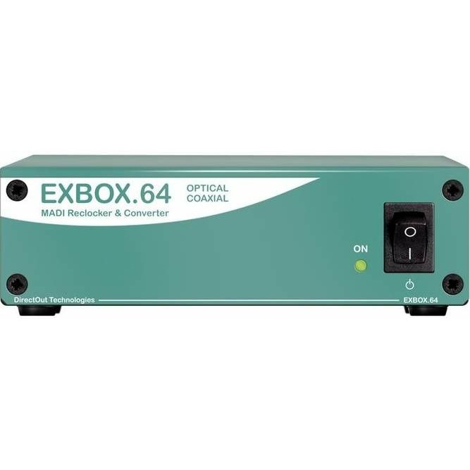 Преобразователь DirectOut EXBOX.64 BNC/SC позволяет восстанавливать подверженные джиттеру сигналы MADI, когда устройство неспособно захватить входной сигнал. Также DirectOut EXBOX.64 BNC/SC может работать с приложениями MADI в роли обычного преобразователя сигналов между оптическим и коаксиальным интерфейсами, если необходим сигнал другого формата.