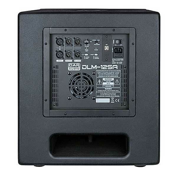 DAP-Audio DLM-12SA – высококлассный высокомобильный активный сабвуфер с усилителем класса D и DSP, предназначенный для работы с активными акустическими системами. В составе кабинета имеется 12˝ НЧ громкоговоритель. Для работы с активными АС на тыльной стороне сабвуфера предусмотрены 2 балансных XLR входа для приёма стерео сигнала, сигнал фильтруется активным кроссовером сабвуфера и подаётся на соответствующие балансные XLR выходы для АС. Также предусмотрены балансные XLR выходы необработанного сигнала. На тыльной же стороне находятся регулятор уровня сигнала усилителя, переключатель стерео/моно (неизменённого выхода), переключатель пресетов DSP (2 позиции), кнопка инверсии фазы, контрольные светодиоды наличия питания и наличия сигнала/включения лимитера, выключатель питания, гнездо питания IEC и слот для дополнительного блока USB (не входит в комплект). Опциональный модуль USB даёт возможность не посредственного доступа с ПК к управлению таким инструментам, как усилитель, эквализация, фильтры. DSP обеспечивает сабвуферу надёжную многоуровневую систему защиты. Охлаждение принудительное, при помощи вентилятора. Прочный кабинет выполнен из 15-мм тополёвой фанеры и отлично адаптирован к транспортировке. Для установки стойки имеется стакан Ø 35 мм. Для переноски предусмотрены ручки.