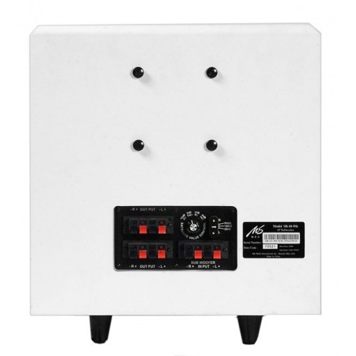 Ms-Max SB10R WH - сабвуфер инсталляционный предназначен для систем фонового звука в кафе, барах, ресторанах, переговорных комнатах, в системах сабвуфер – сателлиты. Компания MS-MAX сообщает о возобновлении производства популярной модели сабвуфера MS-MAX SB10, которое ранее было прекращено из-за труднодоступности динамиков и дороговизны кроссоверов. Сейчас в новые сабвуферы устанавливаются кроссоверы JBL 129-000000-X и динамики с двойной звуковой катушкой JBL 227H, а сам сабвуфер будет собираться в России, о чем свидетельствует литера «R» в названии модели. Сабвуфер имеет выходы для подключения двух сателлитов и может крепиться на стену (настенное крепление WM-SB10 приобретается отдельно), но наилучшие звуковые характеристики достигаются при установке сабвуфера на полу. Сабвуферы MS-MAX SB10R предназначены для дополнения акустических систем MS-MAX серии W и MS. Для подключения сабвуфера и 4 саттелитов MS-MAX W25 (или W27) или сабвуфера и 4 саттелитов MS204 (или MS 206) достаточно одного усилителя мощности MS-MAX E200. MS-MAX SB10R доступны в двух цветовых исполнениях: черном и белом.