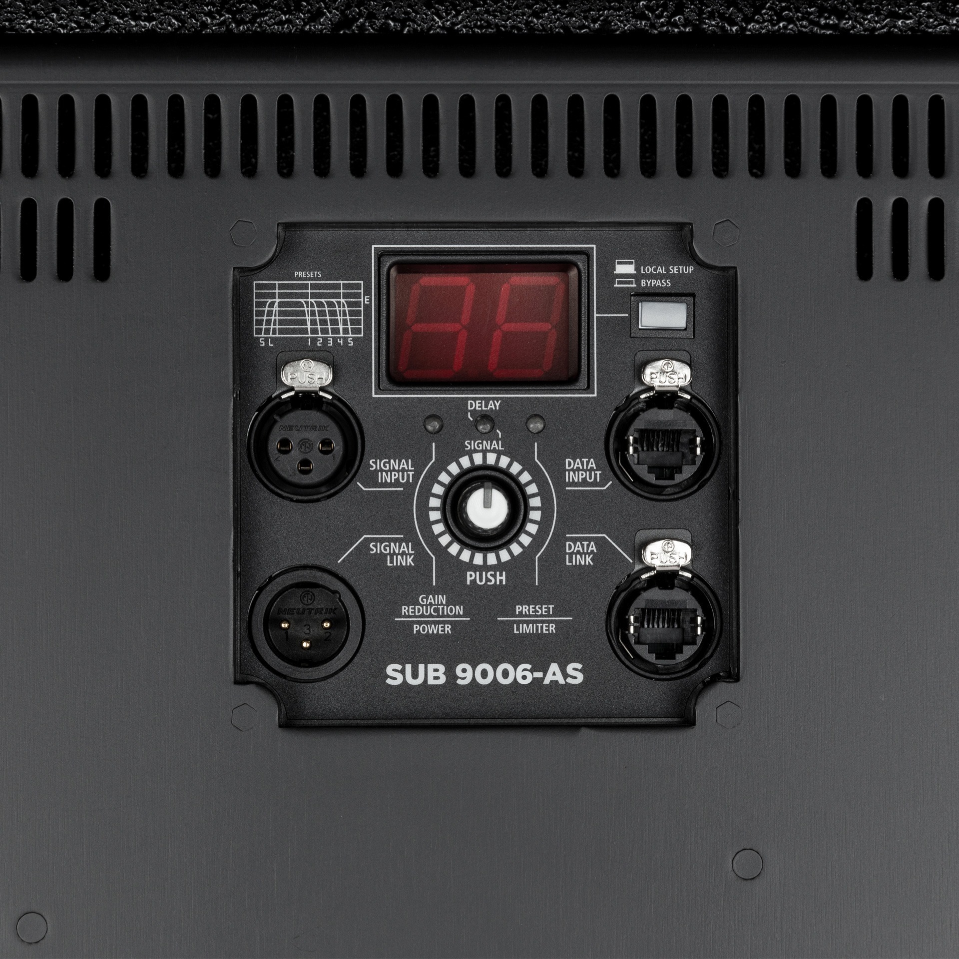 SUB 9006-AS — один из самых мощных сабвуферов 2x18” на рынке. В кабинете высотой 55 см размещены два 18-дюймовых длинноходных неодимовых излучателя с 4-дюймовыми звуковыми катушками, которые воспроизводят диапазон от 30 до 400 Гц. Усилитель мощностью 3600 Вт RMS позволяет сабвуферу развить внушительные 142 дБ SPL максимально. Корпус SUB 9006 совместим с линейными массивами RCF D-Line HDL50-A и HDL10-A и позволяет комбинировать их в граундтеки различной конфигурации.