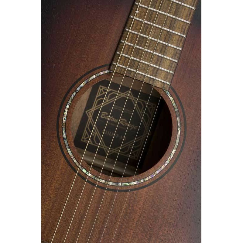 BATON ROUGE X11LM/F-MB – акустическая гитара в корпусе типа фолк, благодаря чему инструмент обладает сбалансированным звучанием и отлично подходит для детей и людей с небольшой комплекцией. Верхняя дека выполнена из красного дерева, задняя дека и обечайки – из красного дерева. Данное сочетание материалов делает тембр гитары ярким и звонким.