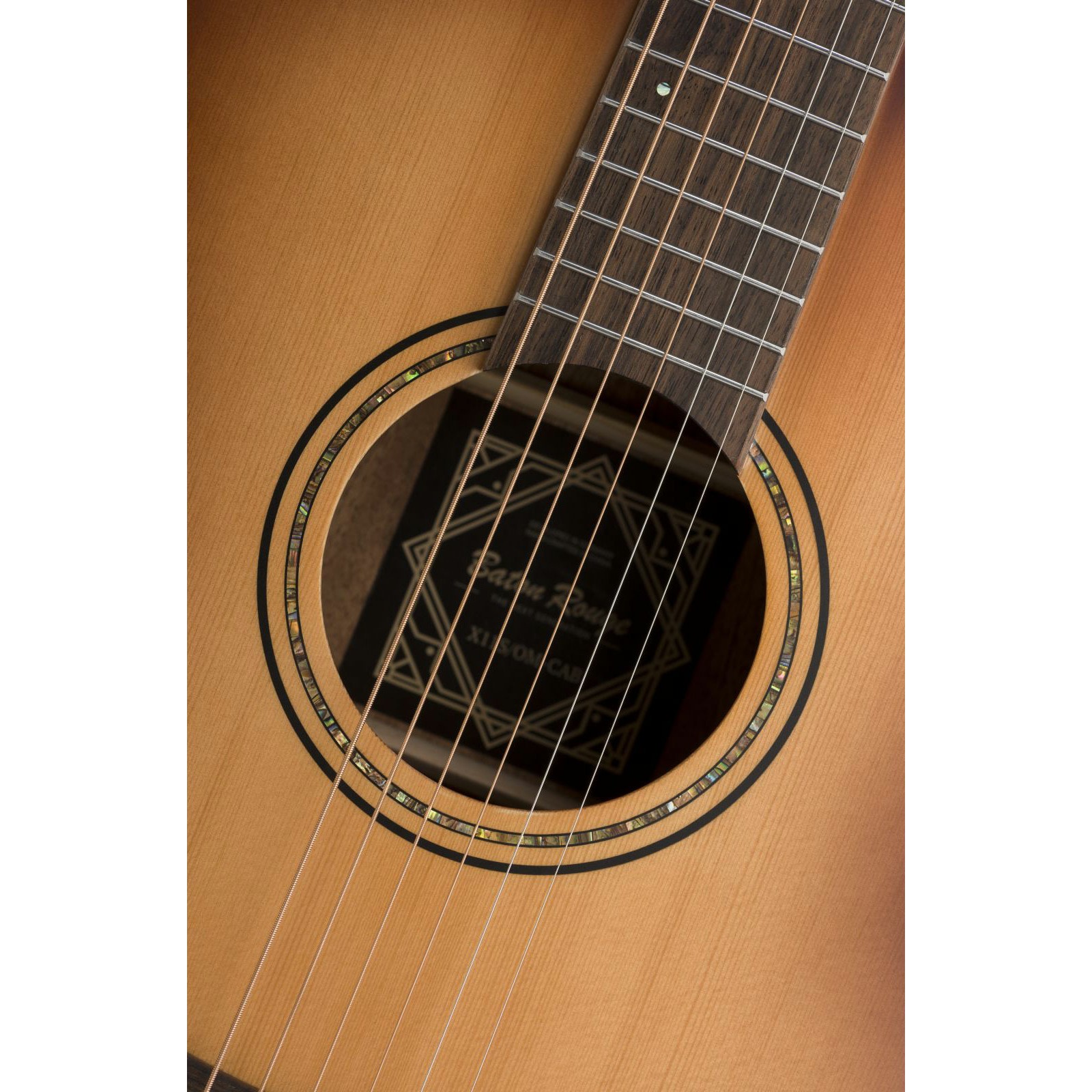 BATON ROUGE X11S/OM – акустическая гитара в корпусе типа OM без выреза. Верхняя дека выполнена из цельной ели, нижняя дека и обечайка – из красного дерева. Гриф изготовлен из окуме, накладка на гриф и сам бридж – из лавра. У гитары 21 лад, а верхний и нижний порожек (46 мм) выполнены из кости.