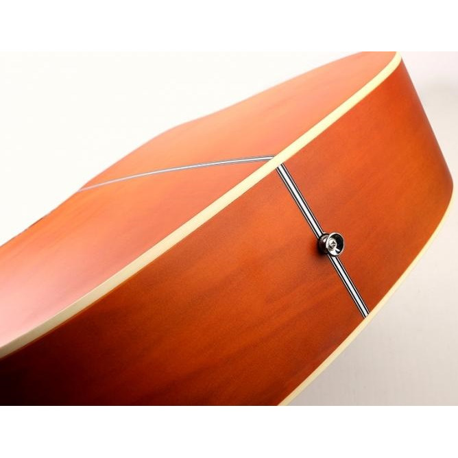 Верхняя дека инструмента изготовлена из ивы. Обечайка и нижняя дека выполнены из липы, которая обеспечивает яркий и понятный звук. Гриф изготовлен из махагони, материал накладки грифа – палисандр. Вырез обеспечивает удобный доступ к верхним ладам.