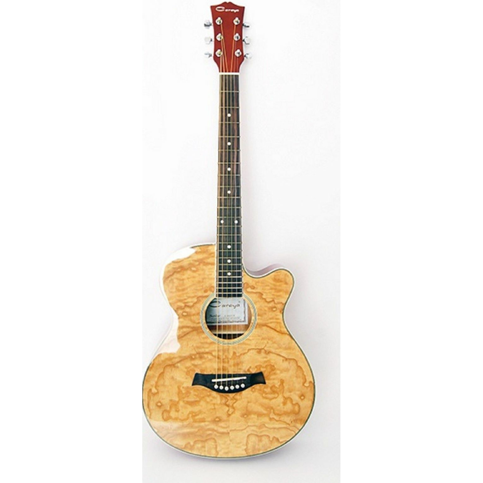 F565C - акустическая гитара от компании Caraya. Она имеет корпус формы джамбо с вырезом для удобного доступа к последним ладам. Верхняя дека сделана из ели, а нижняя дека и обечайки - из ясеня. Накладка на гриф выполнена из палисандра и имеет 22 лада. Колки гитары - хромированные. Цвет: натуральный.