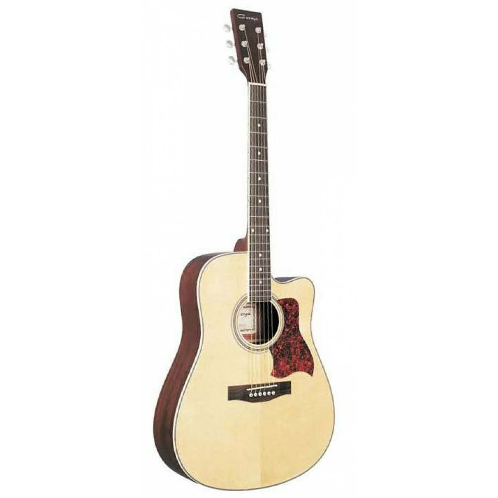 Акустическая гитара Caraya F660C-N – инновация в мире музыки. Специальная конструкция корпуса обеспечивает инструменту необыкновенно звонкое и громкое звучание. На такой гитаре можно играть на небольших площадках без звукоснимателей или микрофонов. Еще одним достоинством гитары является ее внешний вид. Инструмент выглядит стильно, дорого и станет украшением любой коллекции. Верхняя дека - массив ели, задняя дека - ламинат красного дерева, накладка грифа - палисандр, 20 ладов из медноникелевого сплава 2.0мм, колковая механика - хромированная. Рекомендации по хранениюОптимальная температура воздуха — 20–25 °C, влажность — 40‒60 %. При меньшей влажности древесина гитары начнёт рассыхаться, а при большей она разбухнет. Чтобы защитить инструмент от внешних факторов, необходимо хранить его в специальном чехле.
