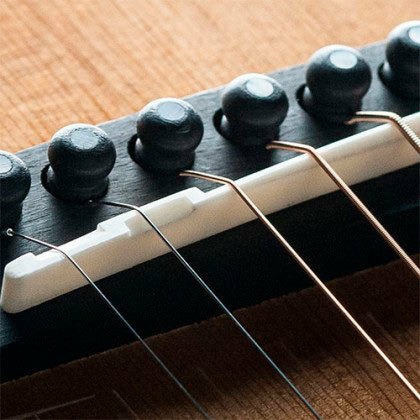 Верхний и нижний порожки изготовлены из кости азиатского буйвола для наиболее естественной и прозрачной передачи энергии вибрации струн корпусу и грифу.