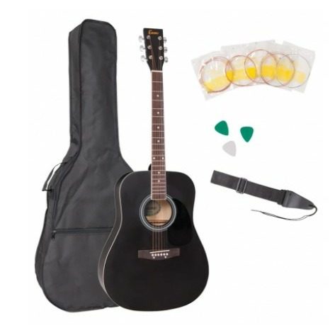 Encore EWP-100BK - это доступный набор для начинающего гитариста, вместе с которым вы получаете все необходимое для эффективных ежедневных занятий. В комплект поставки входит стандартная акустическая гитара с полноразмерным корпусом, выполненным в популярной форме "дредноут", мягкий нейлоновый чехол для переноски и хранения инструмента, духовой камертон, который поможет быстро настроить гитару, ремень, набор медиаторов разной толщины, набор струн, а также DVD диск с обучающими материалами. Стоит отметить, что гитара выполнена в красивом черном цвете с матовым покрытием. На накладке грифа присутствуют белые точки-маркеры, которые позволят быстро сориентироваться на грифе. Колковый механизм имеет закрытую конструкцию и хромовое покрытие. Encore EWP-100BK является оптимальным решением для нетребовательного пользователя, который только открывает для себя мир гитарной музыки.