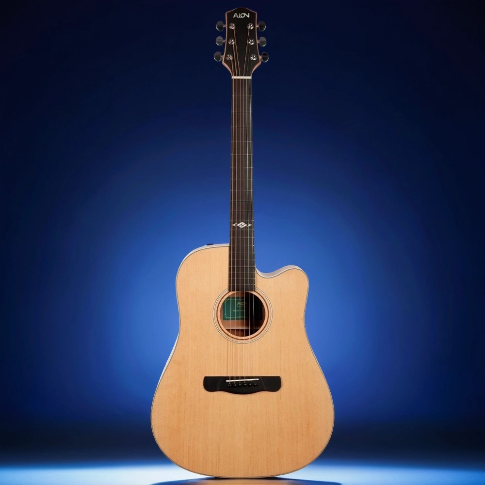 Это акустическая гитара в корпусе дредноут с вырезом, предназначенная для игры медиатором и перебором (фингерстайлом). Инструмент отличается ярким, насыщенным звуком с богатыми обертонами и подходит для использования на сцене, в студии или дома