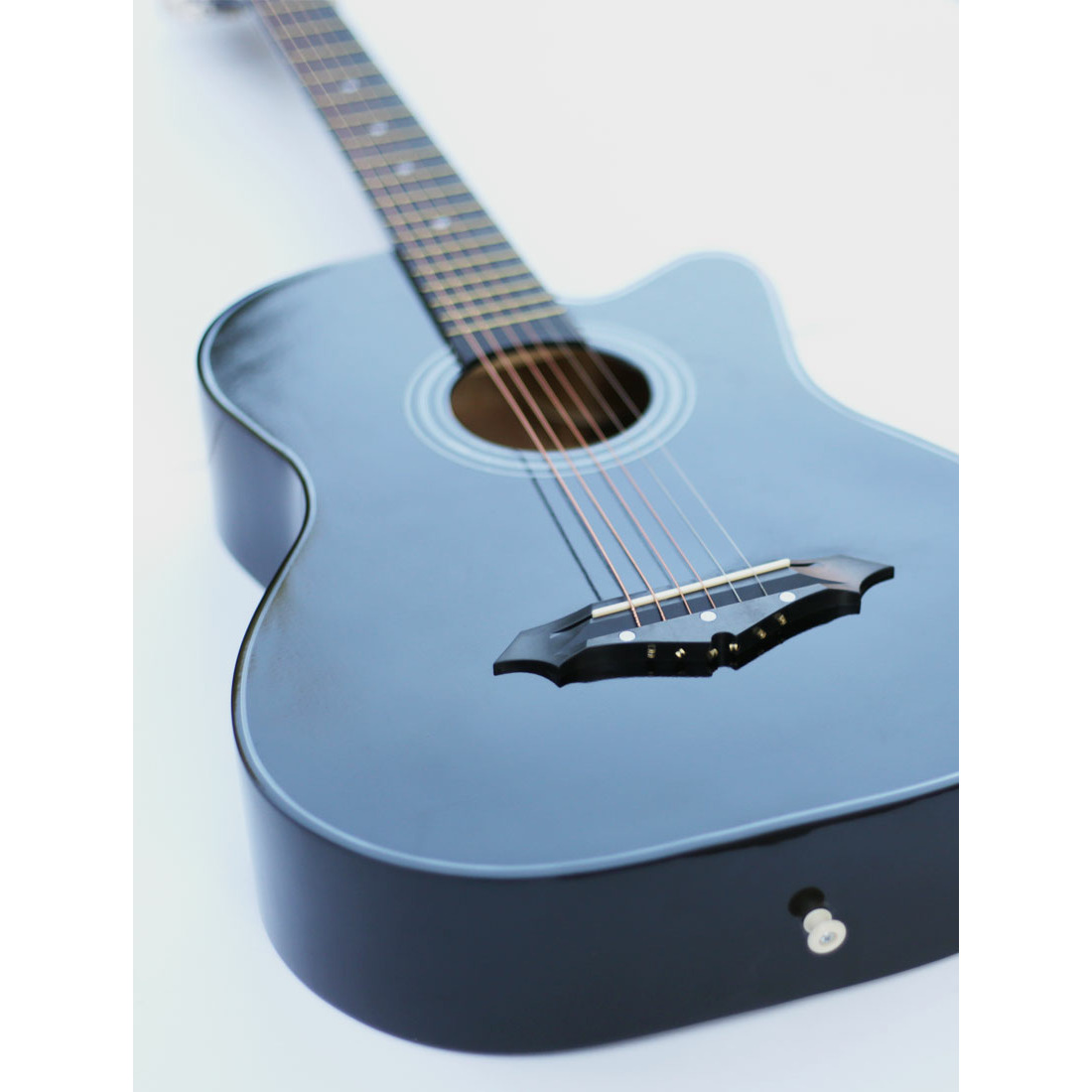FFG-1038BK бюджетная акустическая гитара чёрного цвета с вклеенным грифом. Данная гитара отлично подойдёт не только для новичков, но и для гитаристов более продвинутого уровня. Корпус, изготовленный полностью из липы, имеет вырез для соло и импровизаций. В бридже шесть струн крепятся классическим способом. Накладка грифа и бридж выполнены из качественного пластика.