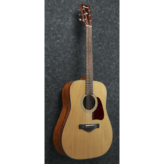IBANEZ ArtWood AVD9-NT - прекрасная шестиструнная акустическая гитара из линейки Artwood Vintage от известного японского производителя в корпусе дредноут. Модель отличается естественным, очень чистым звуком с прекрасным резонансом. Особенность этого инструмента – использование в конструкции корпуса специальным образом обработанной древесины. Процесс высушивания дерева при высокой температуре позволяет придать материалу уникальные акустические характеристики. Такая древесина получила название Thermo Aged™. Модель представлена в натуральном цвете. Покрытие корпуса - глянцевое. Верхняя дека AVD9-NT сделана из цельной древесины ситхинской ели, нижняя деки и обечайка модели - из красного дерева. Гриф имеет форму Soft-V, он также выполнен из красного дерева, сзади гриф имеет матовое покрытие. На грифе 20 ладов с инкрустацией классическими точками. Накладка на гриф – из палисандра, радиус – 400 миллиметров. Палисандровый бридж обеспечивает оптимальную передачу вибрации струн. Открытые хромированные колки 18:1 расположены симметрично, 3 сверху и 3 снизу, позволяют гитаре надежно держать строй. На инструменте установлены струны D'Addario® NB1253 Nickel Bronze толщиной .012-.053.