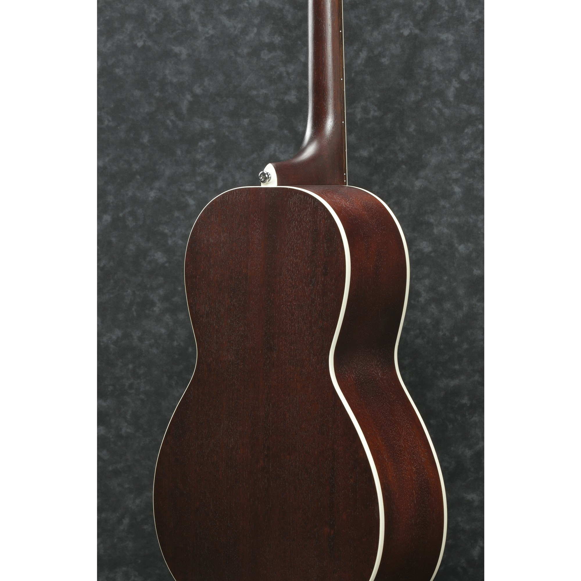 IBANEZ PN19-ONB - акустическая гитара из линейки Performance в корпусе парлор. Такой инструмент станет отличным выбором для молодых музыкантов благодаря своей демократичной цене. При этом гитара отличается прекрасным качеством материалов и сборки и обладает характеристиками, которые Вы найдёте в гораздо более дорогих профессиональных моделях. Нижняя дека и обечайка PN19 выполнены из окоуме. Верхняя дека – из традиционно использующейся в конструкции акустических гитар ели. Гриф гитары выполнен из ньятона. Накладка и бридж - из лавра. На грифе 18 ладов с инкрустацией белыми точками. Мензура – 628,65 миллиметра. Открытые хромированные колки и бридж Ibanez Advantage обеспечивают стабильность строя. Гитара элегантно выглядит в цвете коричневый бёрст «Natural Browned Burst» с матовой отделкой open pore. Такое покрытие не только добавляет облику инструмента элегантности, она также наилучшим образом влияет на звучание: тончайший, тщательно нанесенный слой покрытие позволяет дереву резонировать максимально естественно, оптимизирует вибрацию и позволяет корпусу полностью раскрыть свой потенциал.