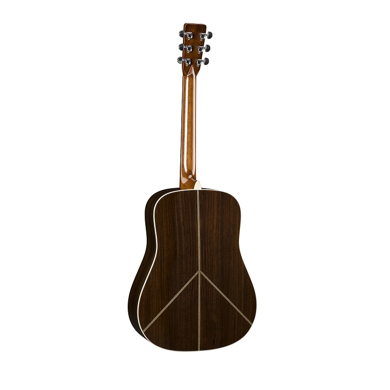 Martin D-28 John Lennon является последователем модели ограниченного выпуска D-28 John Lennon 75th Anniversary, приуроченной к 75-летию Джона Леннона. Этот великолепный дредноут станет украшением любой гитарной коллекции. Цельная верхняя дека из ситкинской ели с технологией Vintage Tone System сочетается с обечайкой и нижней декой из цельного индийского палисандра – на обратной стороне корпуса красуется инкрустация в виде пацифика. На головке грифа с накладкой из индийского палисандре наряду с логотипом Martin расположен легендарный автопортрет Джона Леннона. Маркеры ладов на накладке грифа из черного дерева также решены в стилистике Леннона, 12-й лад украшаю знаменитые очки музыканта. Из других особенностей инструмента стоит отметить окантовку из зернистого ивороида (синтетическая слоновая кость), черно/белые инкрустации из болтарона, гриф типа Performing Artist с модифицированным овальным профилем, хромированные колки закрытого типа с большими ручками.