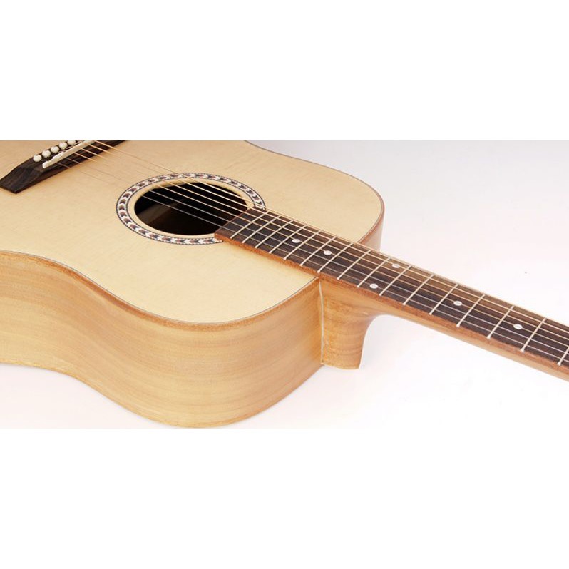 Акустическая гитара Ramis RA-A05-NL – это гитара для того, кто ценит баланс цены и качества. Идеальным образом изготовленный из отборной ситхинской ели корпус позволяет добиться длительного сустейна и получить красивый, богатый оттенками звук, который будет прекрасно слышен даже в концертном зале. Её интересный дизайн вызывает желание не выпускать эту гитару из рук. Форма корпуса этой гитары – дредноут, делает её звук громким и отчетливым. Хромированная колковая механика самым достойным образом долгое время держит правильный строй. В результате, мы получаем хорошо сбалансированную и недорогую гитару.