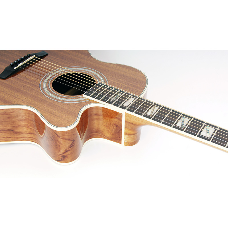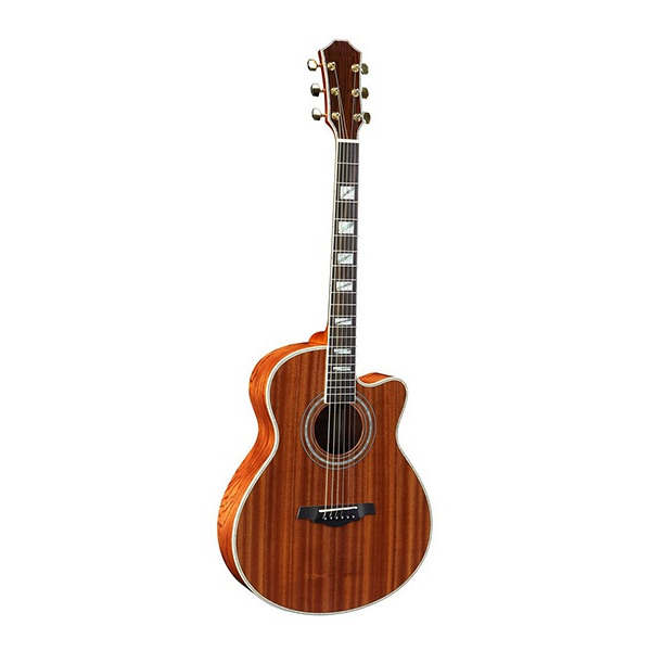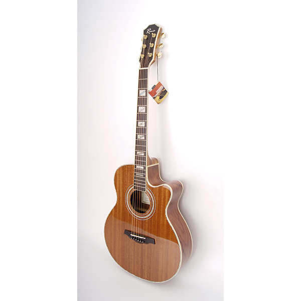 RA-C02C-NL Акустическая гитара, с вырезом 40’. Небольшая и очень качественная гитара формы "джамбо". Отборная древесина, применяемая в изготовлении этой модели, обеспечит вам устойчивость в звуке и прочность гитары, так что вы сможете не беспокоиться о ее состоянии. Также эта древесина придает модели очень красивую текстуру! Верхняя дека: сапеле. Задняя дека и обечайка: бубинга. Гриф: нато. Накладка грифа: палисандр. Окантовка: пластик АБС.