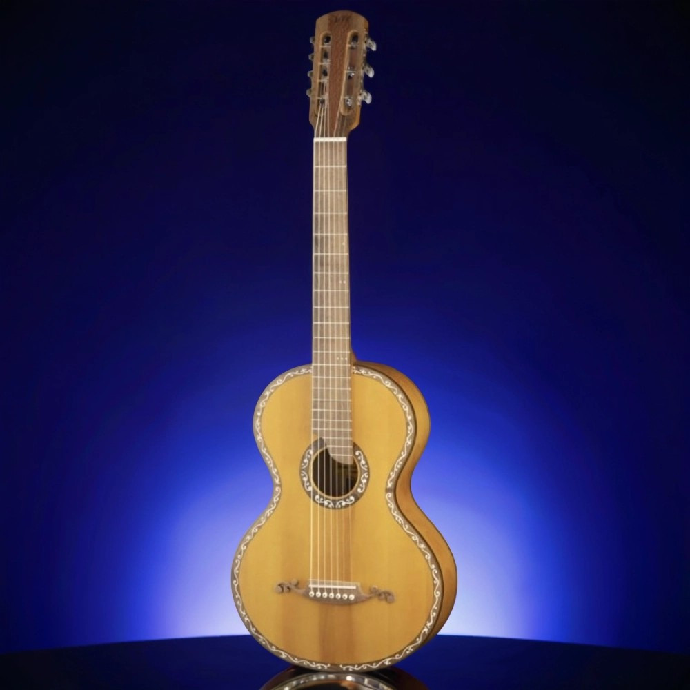Модель из новой серии. Инкрустация окантовки и розетки натуральной костью. Дизайн, как всегда, по образу и подобию старинных русских гитар. Эта гитара образца модели 1904 года Ю.Г. Циммерманъ. Модель из массива ели и массива клёна.