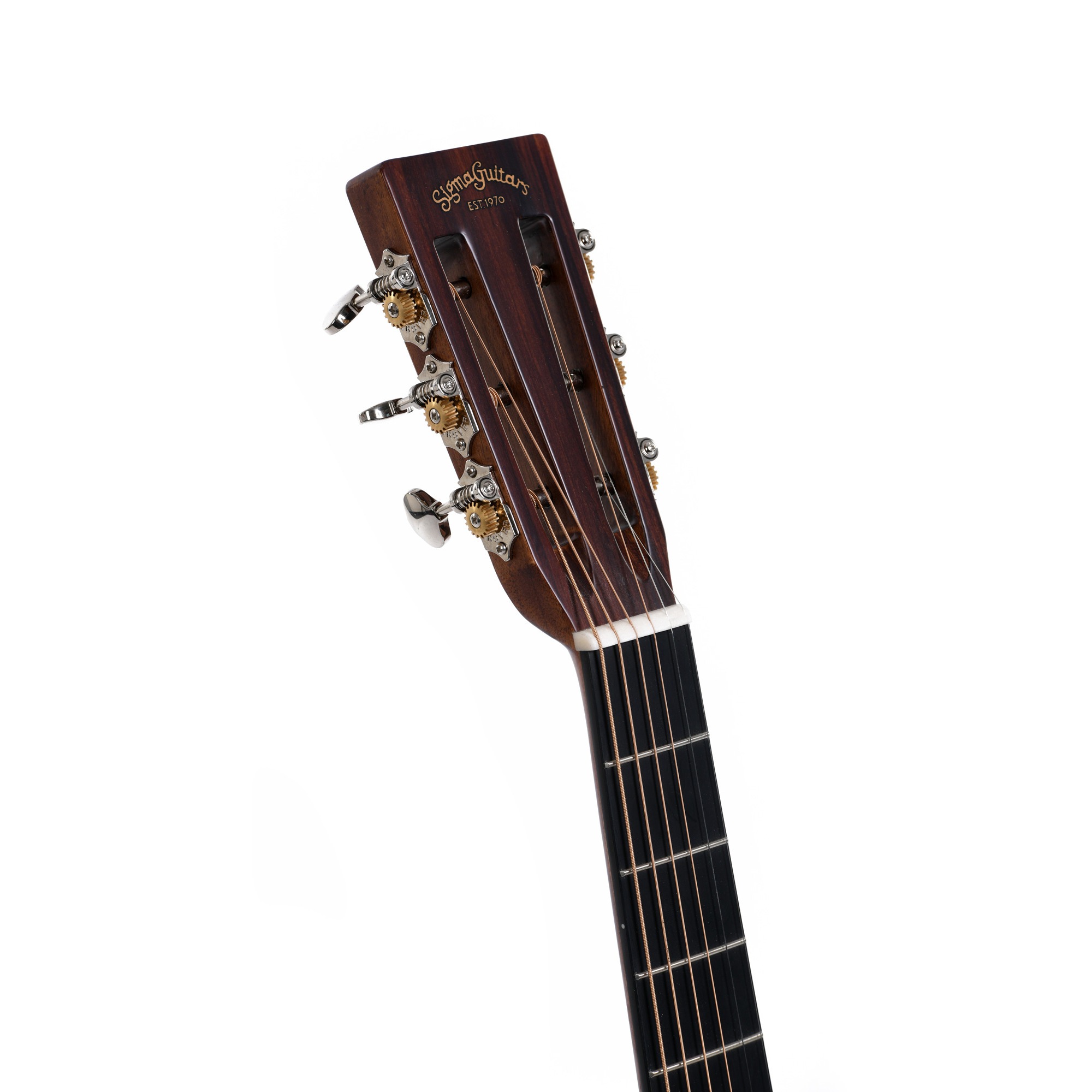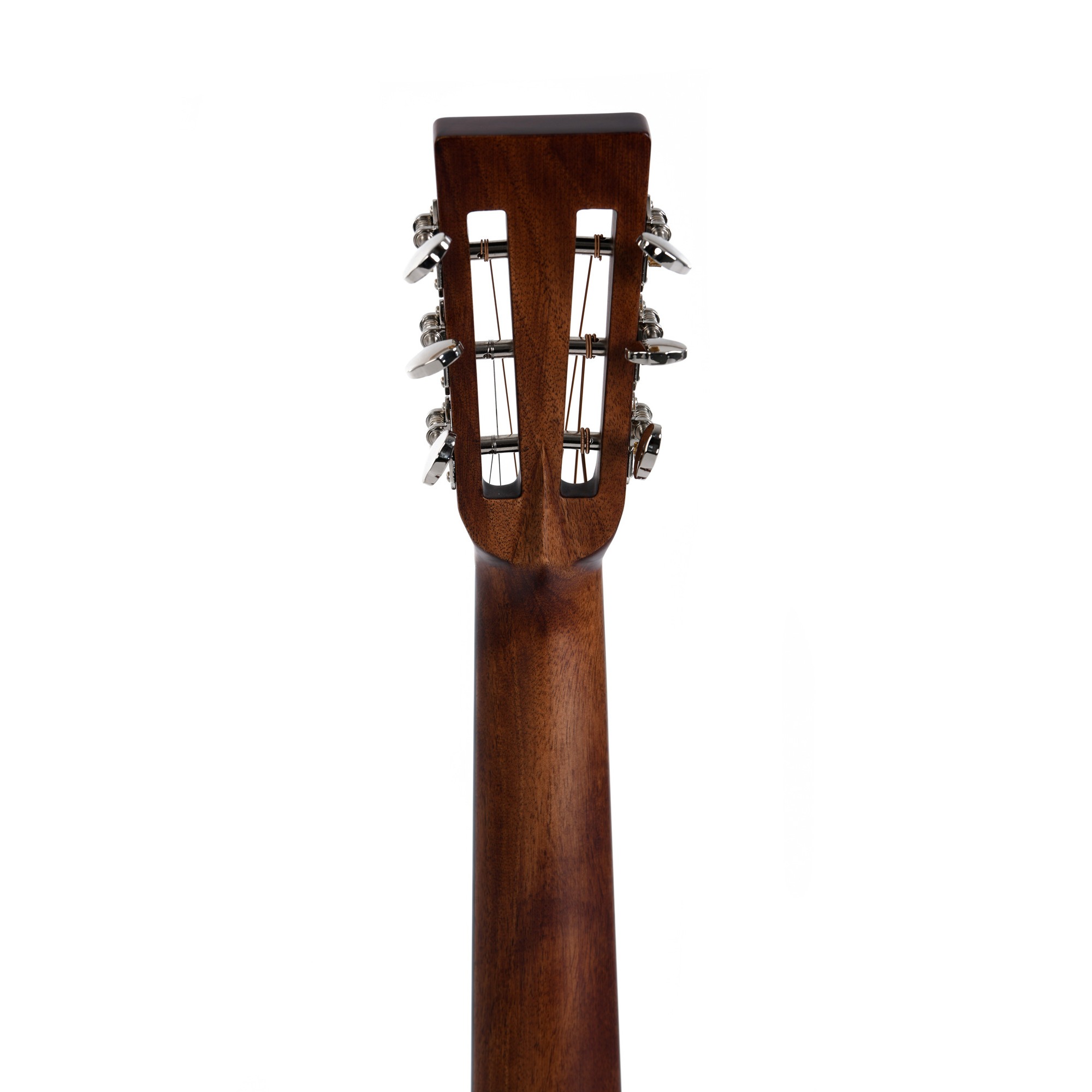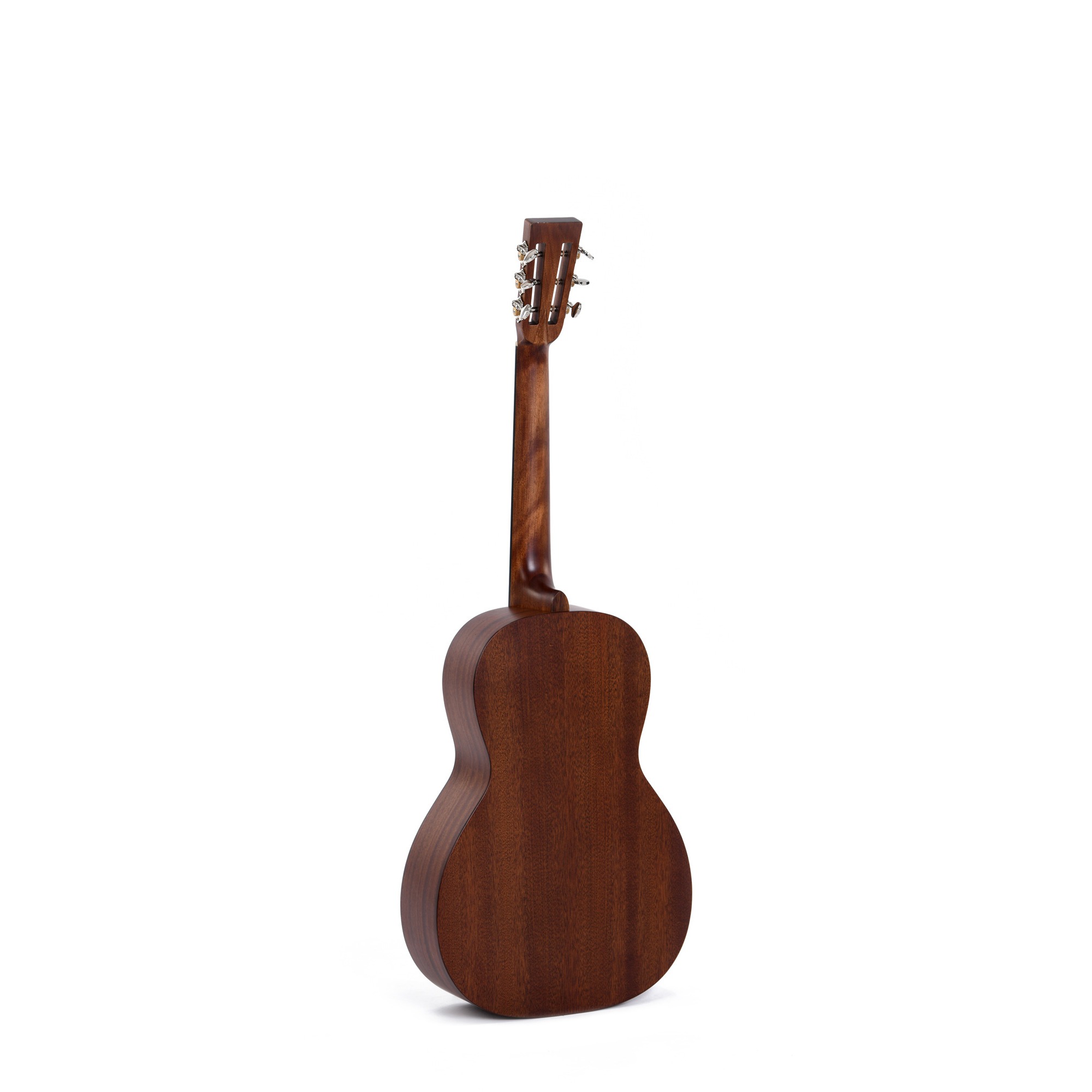 Sigma 00M-15S+ - акустическая гитара, предлагающая потрясающую комбинацию богатого, насыщенного и резонансного звучания с мощным акустическим голосом и игровым комфортом. Корпус изготовлен полностью из махагони, который производит теплый тональный характер, прекрасно подходящий к широкому диапазону жанров. Из натуральной кости порожки еще больше дают резонанса и отличный сустейн, в том числе 00-12 форма корпуса обеспечивает довольно комфортными игровыми ощущениями в любом положении, а также идеальна, как для fingerpicking стиля, так и игры боем. Его форма напоминает гитары parlour, что делает 00M-15S+ великолепной для старой школы блюза и слайд техники. Помимо всего этого, она имеет визуально поразительный внешний вид, благодаря естественному рисунку структуры красного дерева, никелированным колкам и простой розетке.