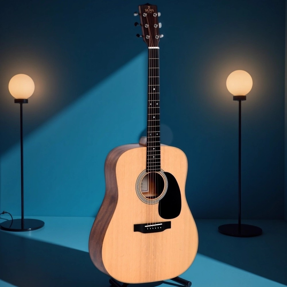SIGMA SDM-ST - это шестиструнная акустическая гитара без звукоснимателя. Гитара имеет сбалансированное, насыщенное звучание и компоненты конструкции премиального класса. Верхняя дека гитары изготовлена из массива ситхинской ели, выдающей чистое, яркое и насыщенное звучание. Нижняя дека и обечайка изготовлены из массива красного дерева. Благодаря тщательно подобранной древесине деки гитара порадует музыкантов глубокими басовыми обертонами и сбалансированным звучанием высоких струн. Верхняя дека и гриф гитары имеют элегантную финишную отделку, а резонаторное отверстие верхней деки оригинальный орнамент.
