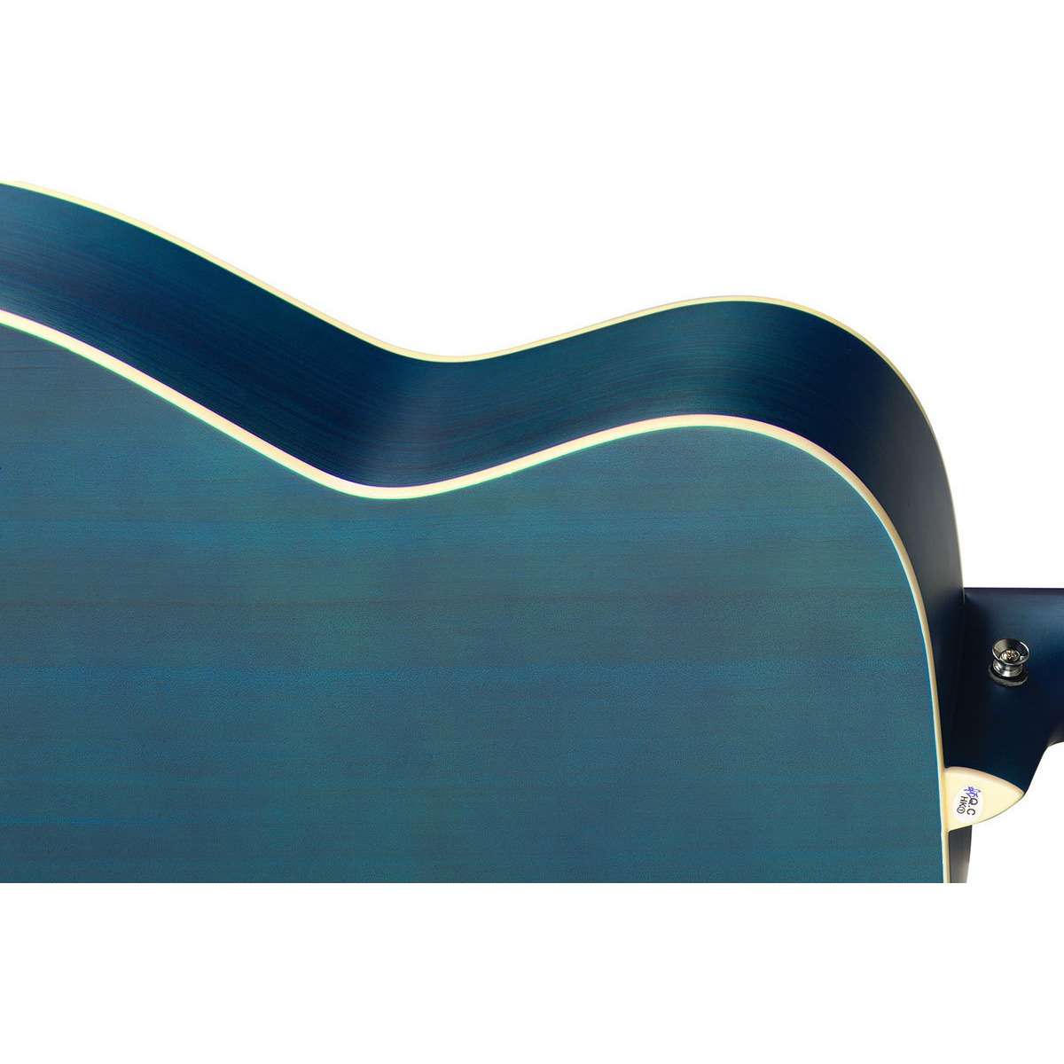Окантовка верхней деки, нижней и грифа – белого цвета, что в сочетании с матовой синей отделкой гитары придаёт ей солидный вид.