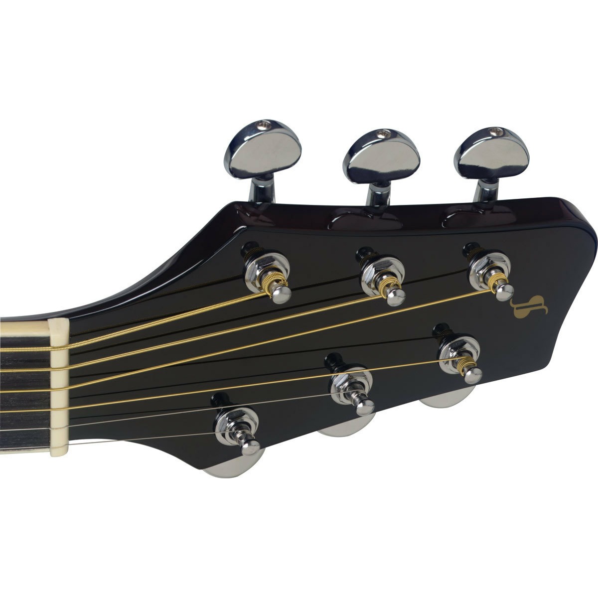 Бридж в гитаре STAGG SA35 DS-N также сделан из синтетической древесины, нижний порожек выполнен с обычным углом. Кант верхней и нижней деки, а также грифа – белого цвета, что придает гитаре благородный облик в сочетании с натуральным цветом и глянцевой отделкой. Колковый механизм выполнен никелированным и литым.