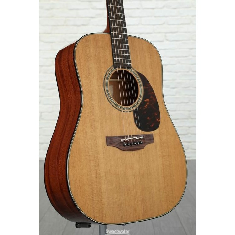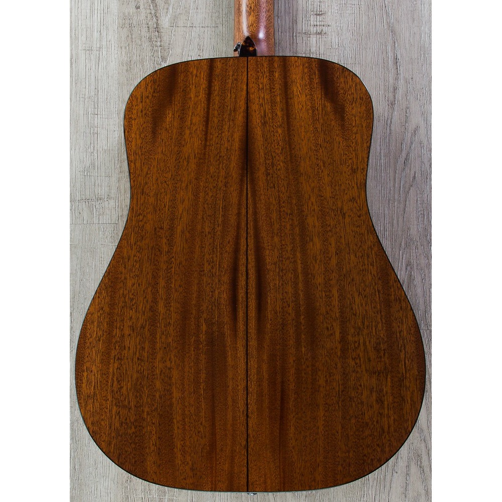 Гитара выполнена в классическом для дредноута без выреза исполнении. Массив ели в топе, прошедший процесс "запекания" для максимальной просушки и искусственного состаривания и дерева, является изюминкой данного инструмента, создающей тот самый винтажный звук даже у абсолютно нового инструмента. Дополняет топ обечайка и задняя дека из массива махагони. Декорирована гитара окантовкой и пикгардом из материалов, имитирующих черепаший панцирь, применены колки открытого типа.