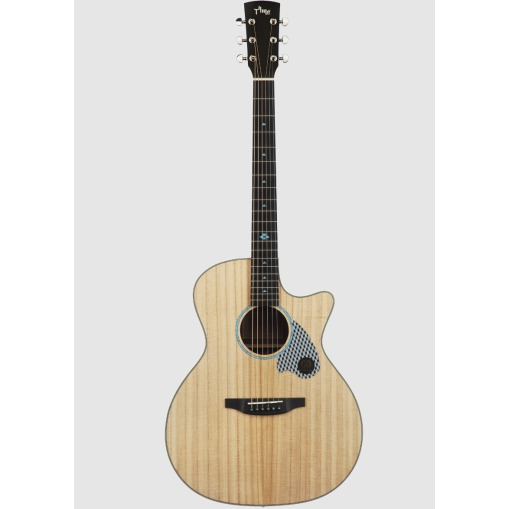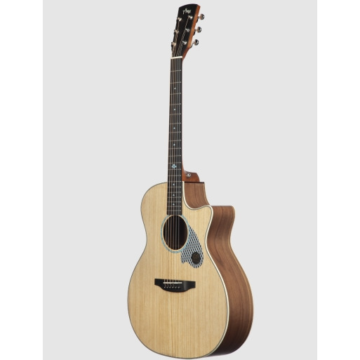 Корпус в форме Гранд Аудиториум обеспечивает объёмное панорамное звучание при акустическом исполнительстве. Верхняя дека из массива павлонии, в сочетании с нижней декой и обечайкой из грецкого ореха, формирует мягкий, четкий и сбалансированный звук, отличающийся большим количеством верхних частот.