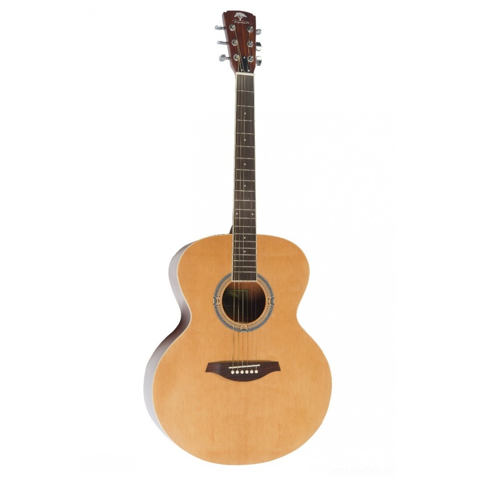 Virginia VLJ40 - акустическая гитара с формой корпуса мини-джамбо. Замечательный инструмент профессионального уровня по невероятно низкой цене! Эта модель создана по всем канонам, характерным для этого типа фолк-гитар: верхняя дека из массива резонансной ели, нижняя дека и обечайка из африканского красного дерева сапеле, узкий гриф из кедра с палисандровой накладкой и палисандровый бридж, металлические струны. Гитара сделана надежно, гриф и бридж прочно и аккуратно вклеены, пружины достаточно крепкие, чтобы выдержать сильное натяжение даже толстых струн, литые колки хорошо держат строй, лады аккуратно закатаны для комфортной игры. Внешнему виду так же уделено должное внимание, качество древесины подчеркивают прозрачный глянцевый лак и окантовка корпуса и грифа из пластика под слоновую кость, голова грифа отделана экзотическим шпоном зебрано. Звук яркий, насыщенный, с богатыми обертонами и потрясающей динамикой сделает честь и гораздо более дорогим гитарам от именитых брендов. В целом это прекрасный инструмент, который одинаково хорошо подойдет для репетиций, концертов и студии.