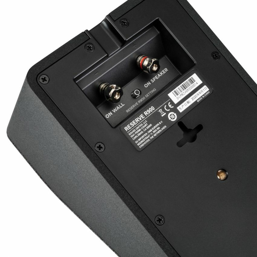 Модуль Reserve R900 сертифицирован Dolby Atmos и разработан в соответствии со спецификацией DTS:X. Благодаря возможности настенного монтажа или размещению поверх совместимой акустической системы серии Reserve этот модуль позволяет подходить к установке болеее гибко. Поверните переключатель на задней панели R900, чтобы выбрать нужное положение, и он автоматически адаптируется для наиболее эффективной работы.