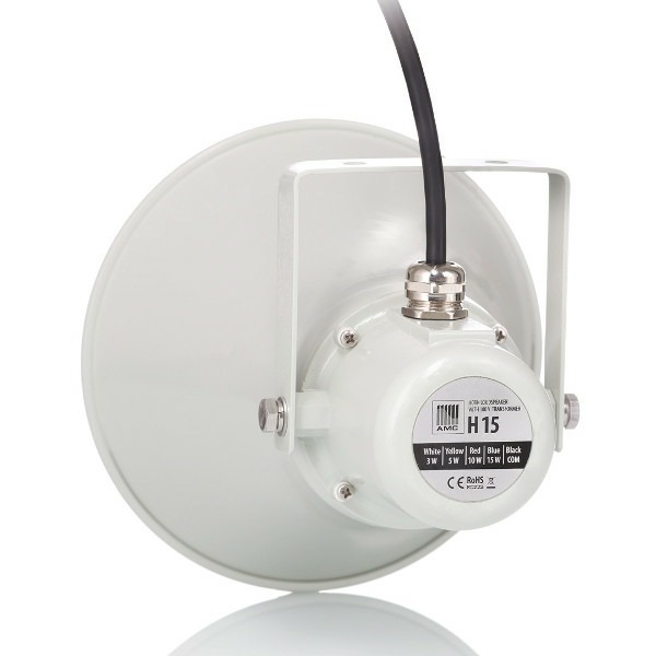 AMC H 15 - всепогодный алюминиевый рупорный громкоговоритель. Для трансляции объявлений в специализированных помещениях и на открытых площадках. Выполнен из высококачественных материалов и компонентов, благодаря чему обладает большой надежностью и долговечностью.