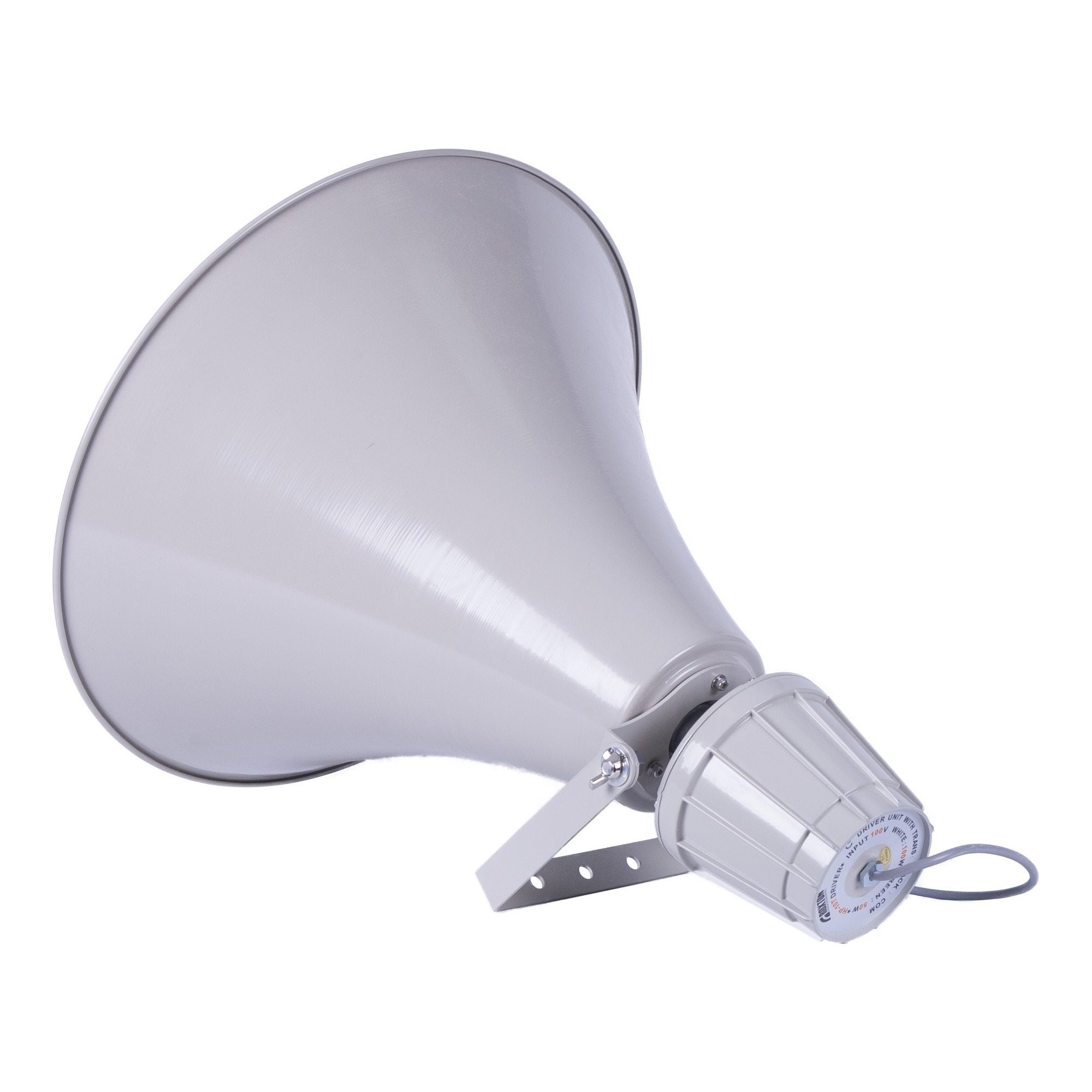 Roxton HP-10T - рупорный громкоговоритель входной мощностью 100 Вт, который сочетает в себе хорошие акустические характеристики и удобство монтажа, что делает его незаменимым при построении систем речевого оповещения и музыкальной трансляции складов, вокзалов, парков и спортивных площадок. Выполненный из всепогодного ABC-пластика, громкоговоритель обеспечивает высокое звуковое давление вкупе с высокой направленностью звукового излучения. Громкоговоритель оборудован специальным П-образным металлический кронштейном, значительно облегчающим монтаж на различные поверхности. Встроенный трансформатор с отводами позволяет устанавливать значения мощности 50 или 100 Вт. Отличительными особенностями ROXTON HP-10T является высокая направленность излучения звуковых волн с максимальным углом раскрытия 90° на частоте 1кГц, а так же уличным исполнением с высокой степенью защиты IP66.