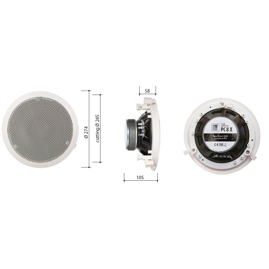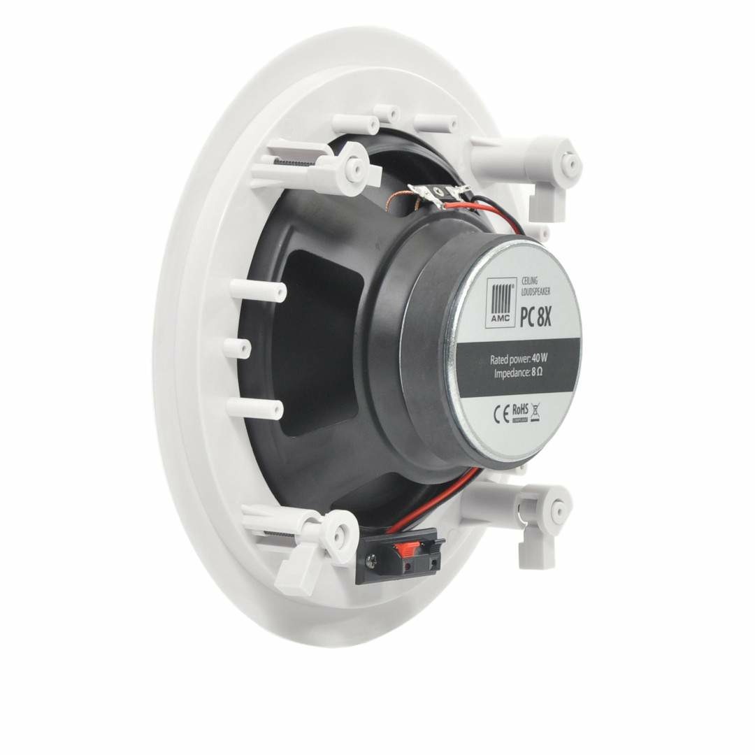 AMC PC 8X - двухполосный коаксиальный потолочный громкоговоритель для воспроизведения музыкальных программ с высоким качеством звучания. Серия PC предназначена для инсталляций, где необходимы высокое качество звука и современный дизайн. Корпус изготовлен из ABS пластика. Эта потолочная акустика предназначена только для низкоимпедансных систем 8 Ом. Они специально изготовлены без трансформатора для превосходной передачи звука. Основное назначение данной серии – громкое и чистое воспроизведение фоновой музыки.