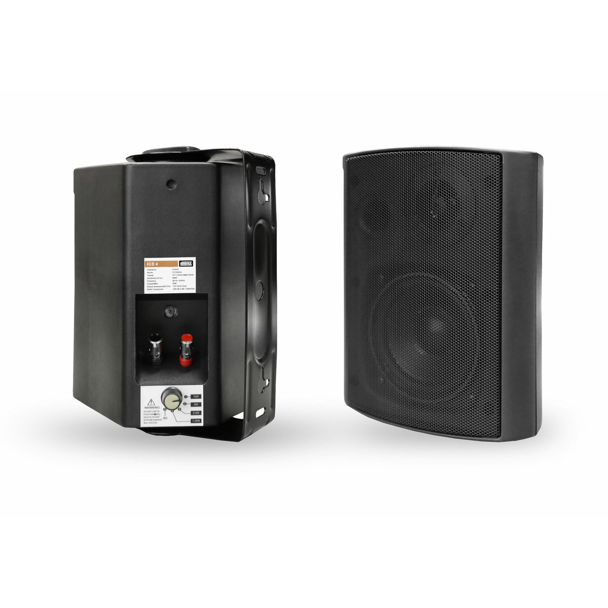 ICE-4 - высококачественная акустическая система из прочного пластика ABS. Предназначена для систем фонового озвучивания помещений, а также для установки на открытом воздухе без прямого попадания влаги. Акустическая система может работать с сопротивлением 8 Ом и в 70/100В линии. ICE - 4 оснащена трансформатором (70В/100В), позволяющим подключать несколько громкоговорителей без угрозы перегрузки усилителя мощности, вызванной падением сопротивления. Пользователю предоставляется 4 настройки выходной мощности (1,25Вт, 2,5Вт, 5Вт, 10Вт), переключаемые при помощи вращательного регулятора, расположенного на задней панели АС. Это обеспечивает удобное регулирование уровня громкости объединенных между собой кабинетов.