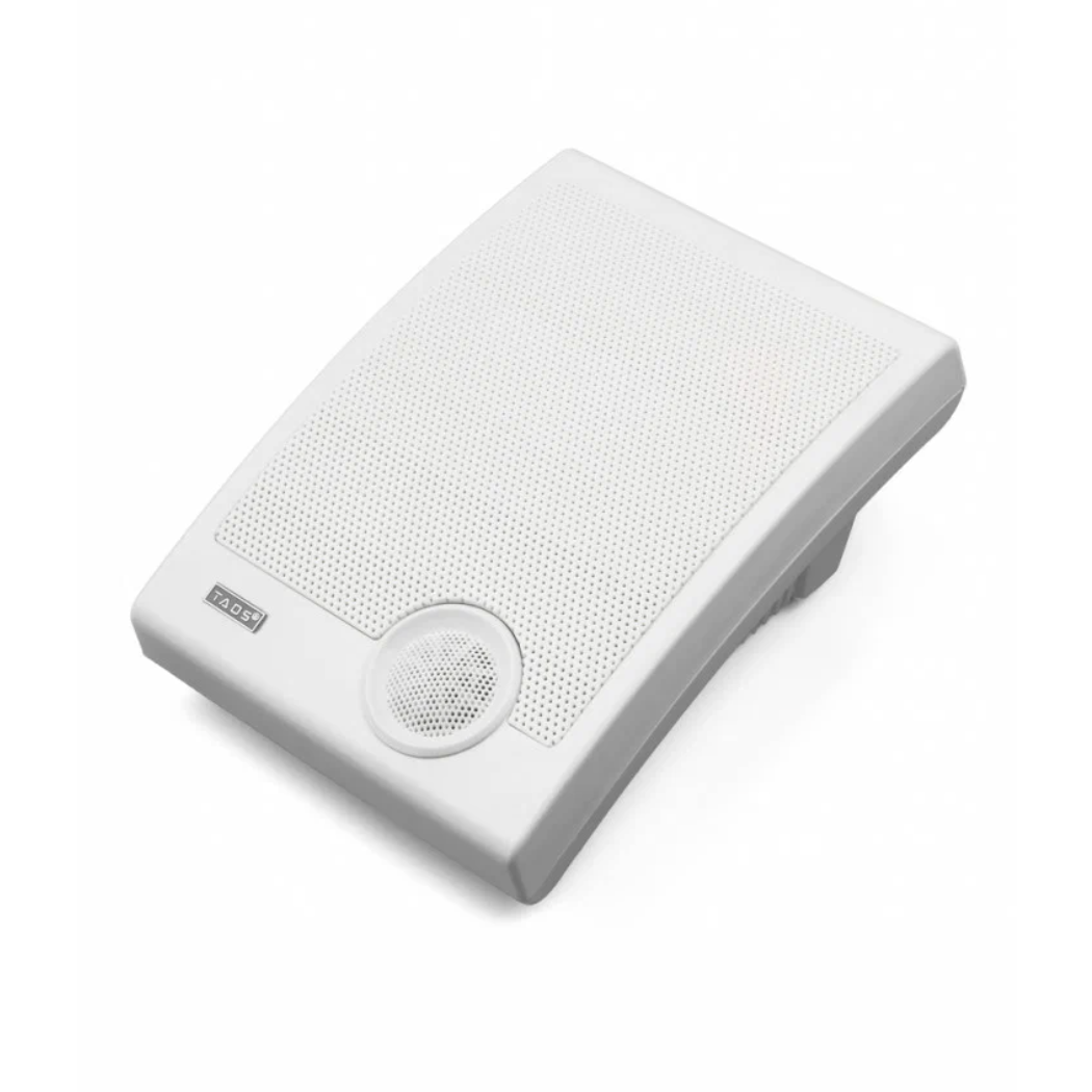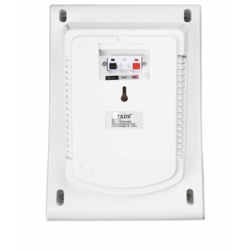 TADS DS-636 – это эргономичный и удобный в использовании громкоговоритель настенного типа. Модель располагает динамиком полного диапазона, диаметр которого равен 158 мм. Это делает устройство подходящим для воспроизведения мягкой музыки и голоса в магазинах, офисных помещениях, гостиницах, ресторанах, универмагах, школах и отелях. В конструкции DS-636 также задействован согласующий трансформатор с напряжением линии 70-100 В. Форма корпуса громкоговорителя прямоугольная, материал для изготовления – ударопрочный пластик ABS белого цвета.