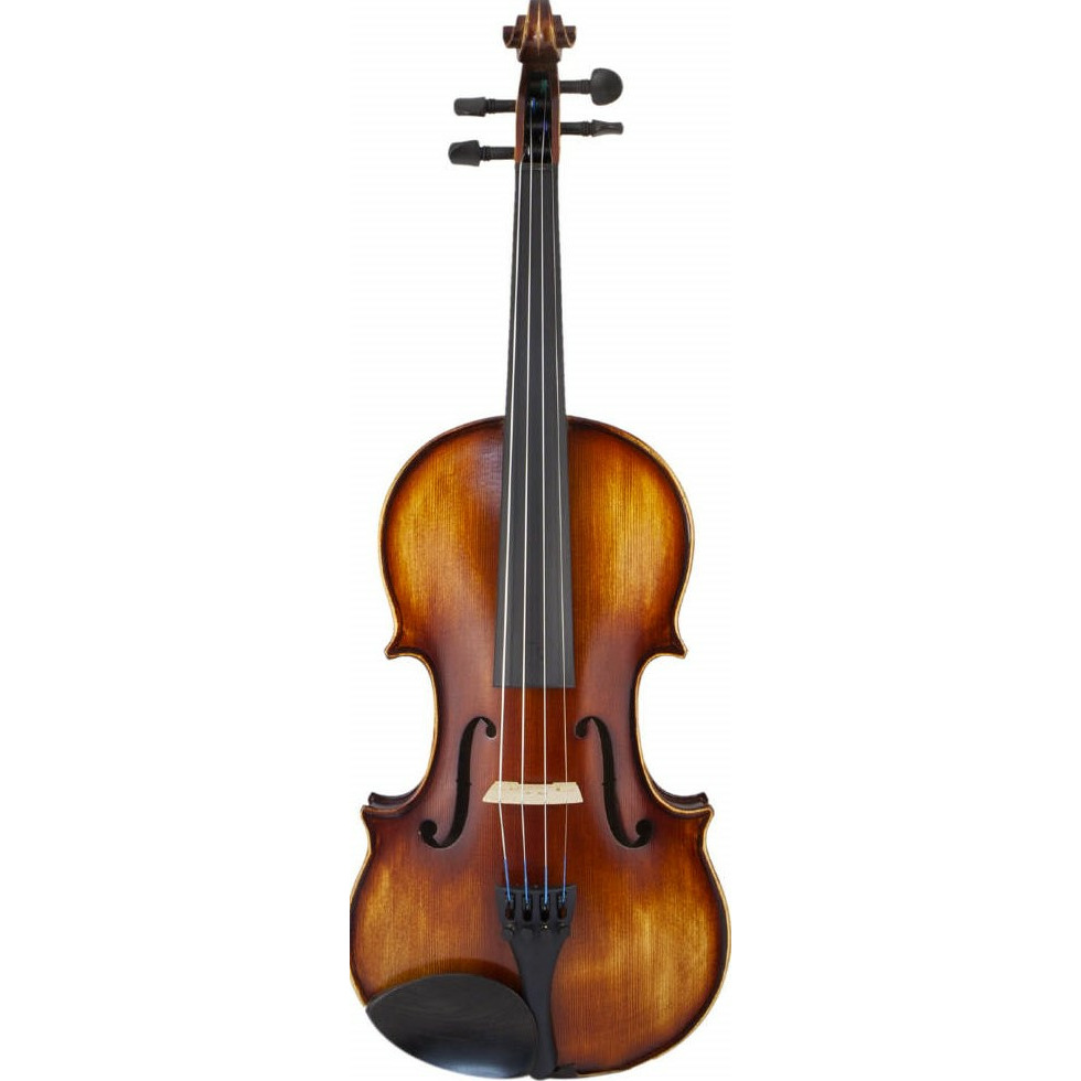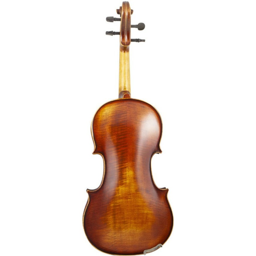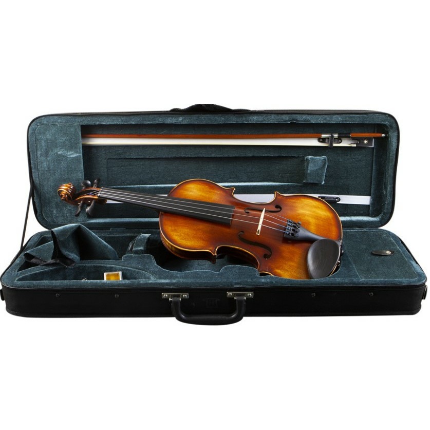 Высококачественная еловая верхняя дека и клен в обечайках с нижней декой создает красивый теплый звук с сфокусированным тоном, что прекрасно подойдет не только для занятий/практики, но и оркестровой игры. Кроме того, его тональную индивидуальность подчеркивает эбеновая фурнитура, а сделанный из черного бакелита струнодержатель гарантирует долгий жизненный срок. Из этого е материала произведен подбородник, который имея эргономичную форму позволяет комфортно заниматься. Также в комплекте есть качественные аксессуары – канифоль, смычок и футляр. А матовая отделка создает впечатление дорогого старого инструмента.