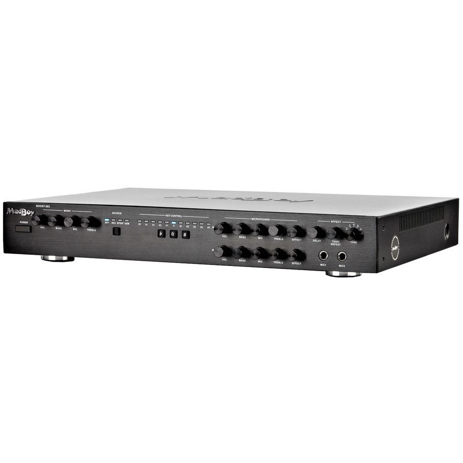 Как и другие устройства финского производителя MadBoy, BOOST-202 оснащен высококачественным контролем тона TONER, благодаря которому Вы сможете настроить желаемую высоту тона в полутонах. Для микрофонов предусмотрено 7 типов эхо-сигналов. Эхо также можно регулировать: изменять его продолжительность, количество повторов, тон.