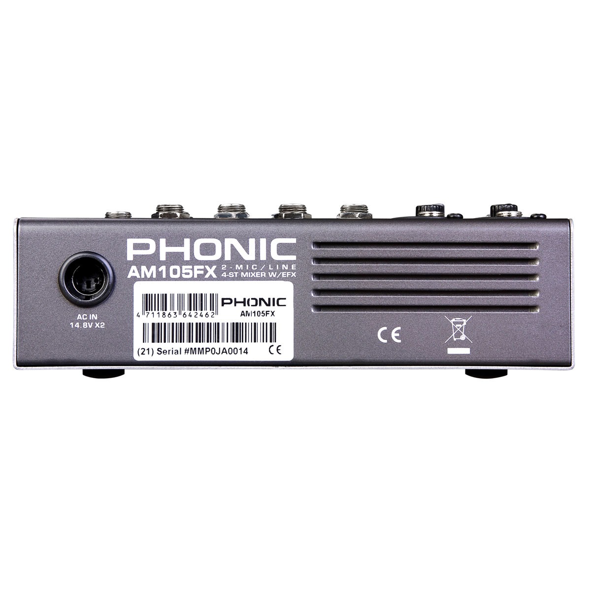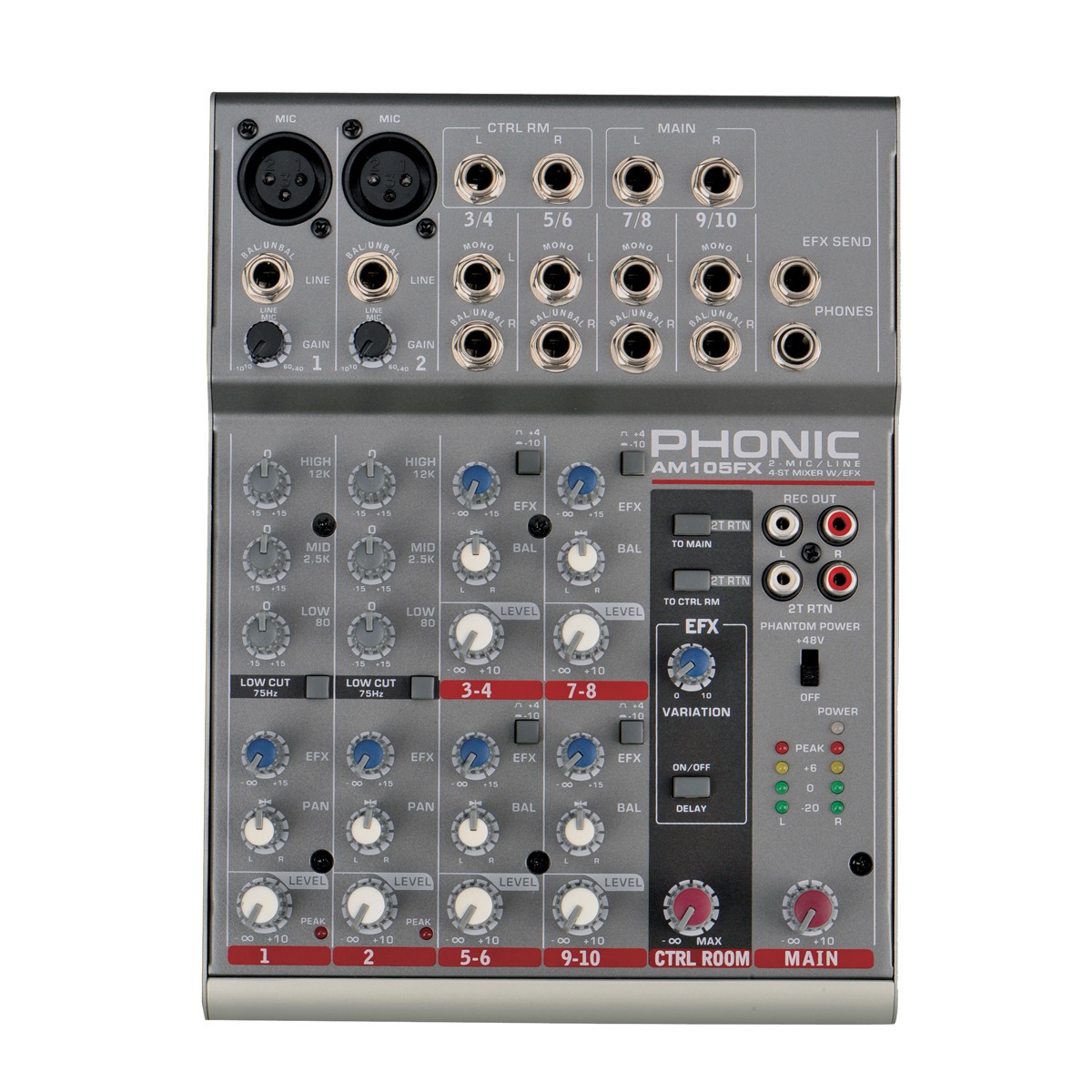 Упрощенный аналоговый микшерный пульт Phonic AM 105 FX профессиональной серии AM со встроенным процессором эффектов.