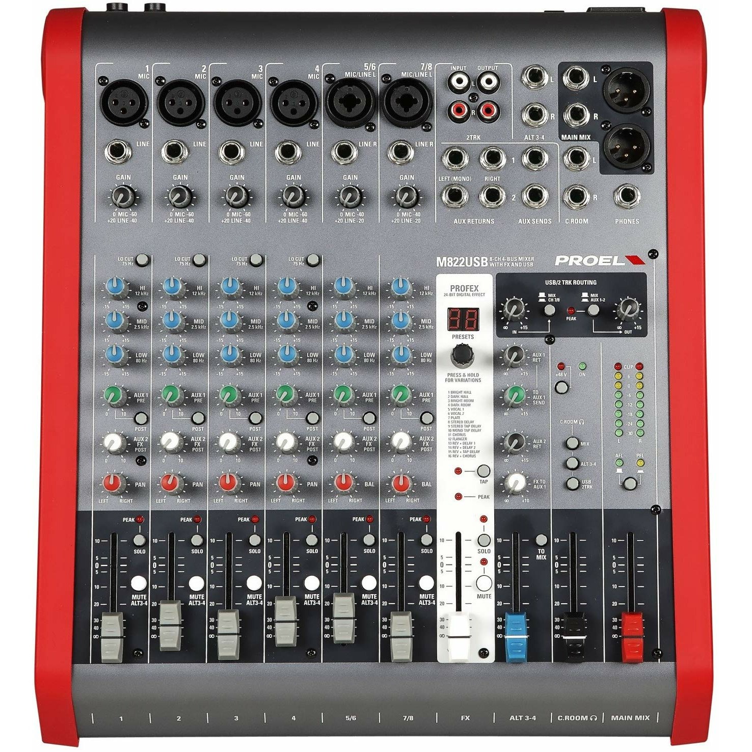 Представляем вашему вниманию компактный микшерный пульт Proel M822USB. Устройство имеет 16 входов, 12 каналов для подключения микрофона, а также оснащено портами aux и USB. Пульт Proel M822USB оснащен 3х-полосным эквалайзером и регуляторами уровня сигнала. Встроенный 24bit DSP процессор предоставляет огромное количество эффектов на 256 пресетов. Для отображения уровня громкости используется специальный индикатор. Устройство Proel M822USB оборудовано дополнительными выходами для коммуникации с устройствами записи/воспроизведения. Представленная модель обладает широкими функциональными возможностям и является хорошим соотношением «цена/качество». Микшер Proel M822USB очень прост в использовании и обслуживании. Комплект поставки включает в себя дополнительные принадлежности и аксессуары. Габаритные размеры устройства Proel M822USB составляют 315 x 91 x 363 мм. Параметры электропитания: 110-240 В. Компания Phonic является признанным мировым производителем качественного оборудования для аудио систем. Все продукты тщательно тестируются при изготовлении с учетом самых строгих требований. Это гарантирует высокое качество и надежность. Выпускаемое оборудование совершенствуется с каждым днем.