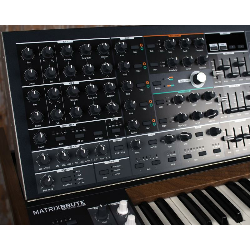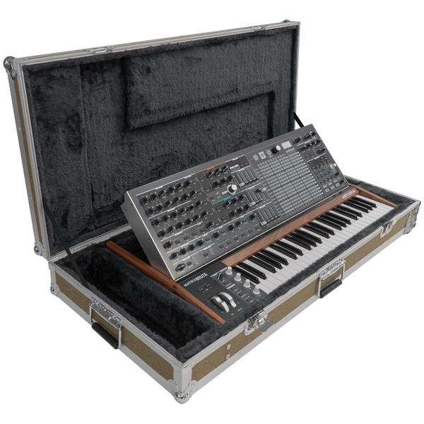 Arturia MatrixBrute & Flight Case представляет собой полноценный аналоговый синтезатор, прекрасно подходящий как для студийной, так и для концертной работы. Прочный кейс эффективно защищает устройство во время транспортировки, поэтому можно не опасаться за сохранность устройства и брать его с собой на каждый концерт. Сам синтезатор отличается интуитивно понятным интерфейсом и крайне удачным совмещением аналогового и модульного синтеза звука с цифровыми технологиями, которые дают возможность сохранения полученных настроек и позволяют гибко настроить управление под себя. Модуляционная матрица обеспечивает эффектный внешний вид, удобную работу с секвенсером, а также расширяет диапазон возможных тембров до бесконечности. Корпус является прочной металлической конструкцией со стенками и вставкой на лицевой панели из натурального дерева.