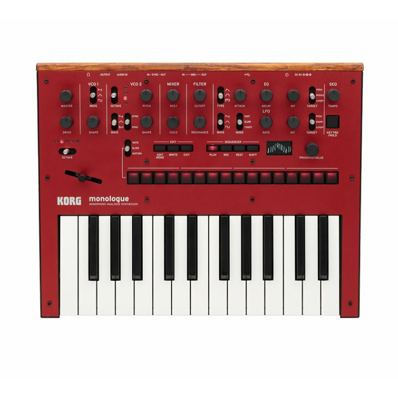 KORG MONOLOGUE-RD синтезатор высокопроизводительный, красивый и элегантный аналоговый синтезатор от знаменитой японской компании. Это полностью программируемый монофонический синтезатор нового поколения. В конструкции MONOLOGUE используются те же технологии, что в знаменитой модели Minilogue. 25-клавишный синтезатор получил обновлённое звучание и ряд современных функций, позволивших сделать модель в полной мере универсальной, подходящий для музыкантов разного уровня мастерства, играющих в разных стилях. Возможно сохранение в памяти до 100 программ (80 предустановленных и 20 пользовательских). Высокопроизводительный шестнадцатишаговый секвенсор, два осциллятора, широкий выбор фильтров, 32 установки тонкой настройки, 23 отдельных элемента управления на панели, работающий в режиме реального времени светодиодный осциллоскоп и многие другие полезные функции делают синтезатор KORG MONOLOGUE действительно многофункциональным устройством. Возможности коммутации предусматривают аудио входы и выходы 1/4 джек, разъемы Sync In и Out (мини-джек), вход и выход MIDI, разъем для подключения наушников и порт USB. Компактные размеры синтезатора и его небольшой вес (всего 1,7 кг) позволяют легко брать его с собой в туры и поездки. Это в полной мере портативная модель, которая может работать как от сетевого адаптера (в комплекте), так и от 6 батарей АА, её удобно использовать на выездных мероприятиях и выступлениях. Срок работы от батарей – 6-8 часов. Представленная модель – яркого красного цвета.